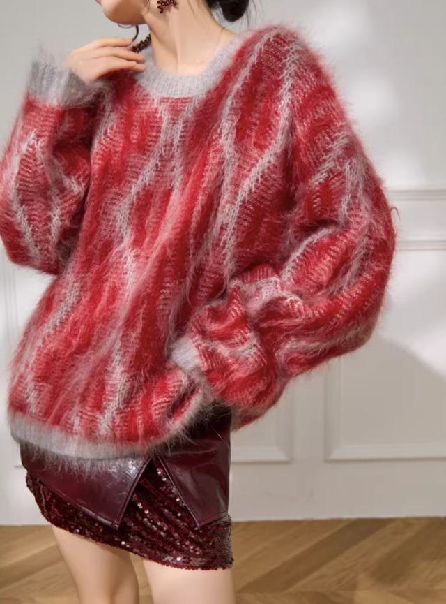 長袖 オーバーサイズ ミニワンピ風 ニット / 076