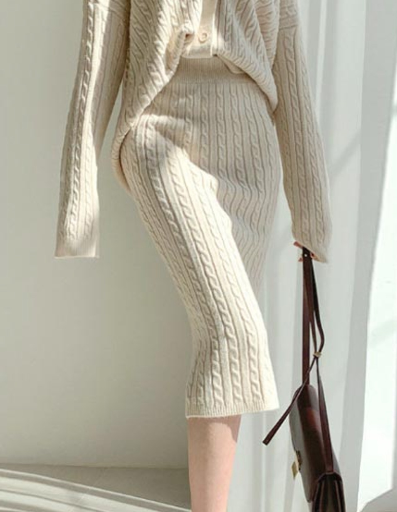 ケーブル編みゆるニットセットアップ 上品で大人かわいい【アイボリー】