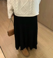 ソフトニットスカート ハイウエストスリミングミドル丈プリーツスカート