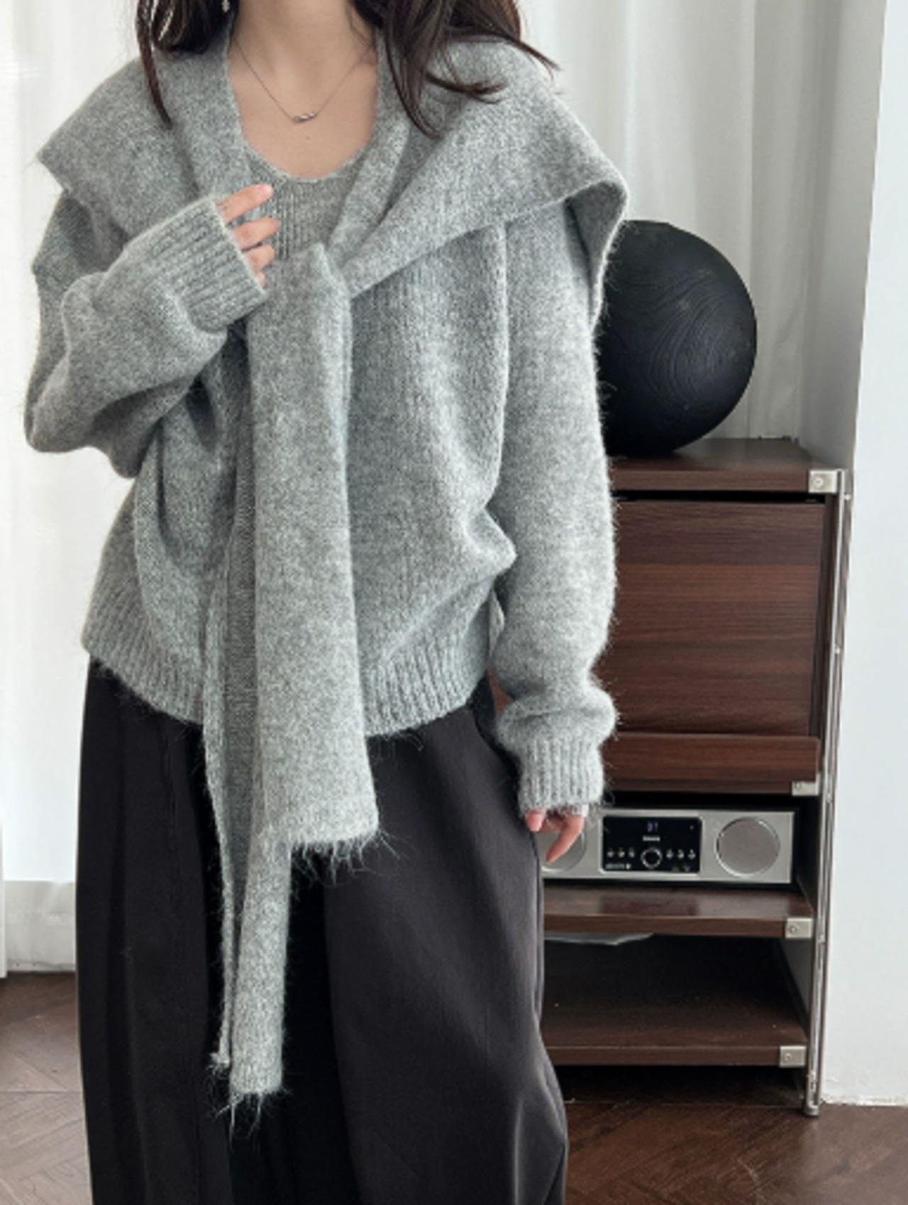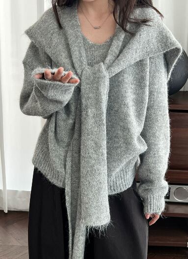 ショールセーター ツーピースセット レディース 長袖ニット ゆったりトップス