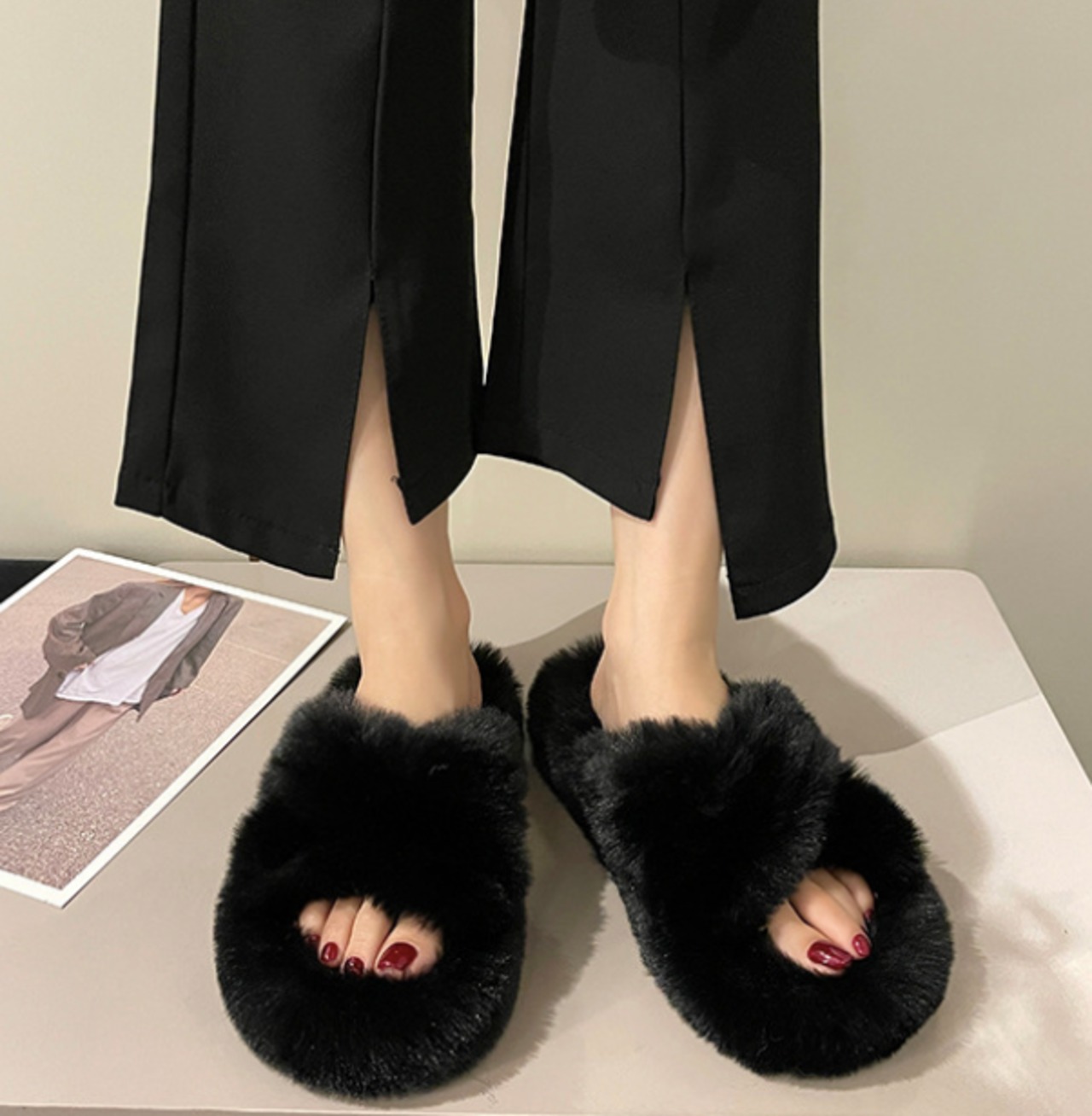 クロスオーバーシューズ モコモコサンダル 韓国ファッション