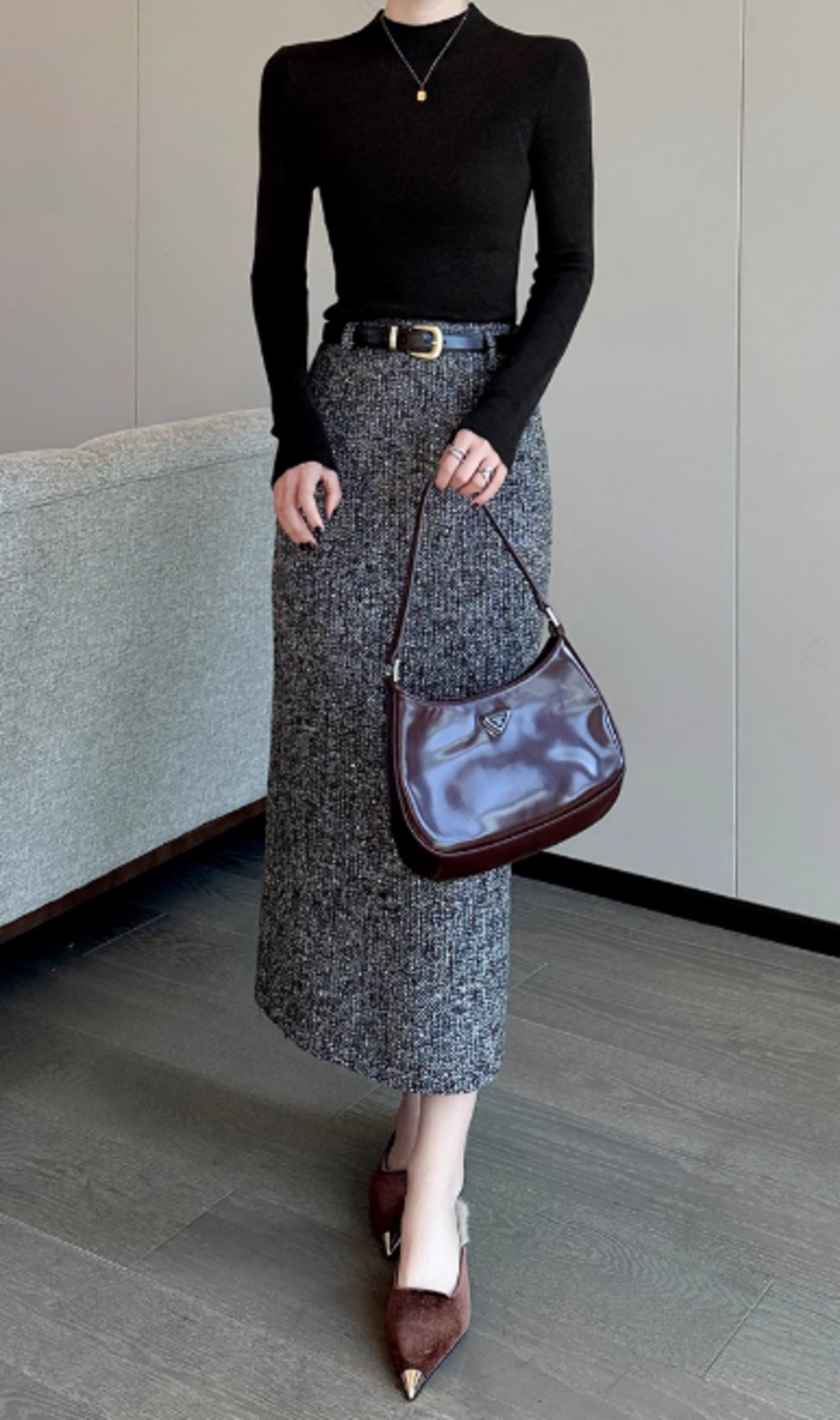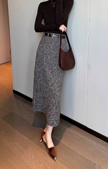 ブラウン ミックスカラー タイトスカート