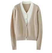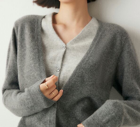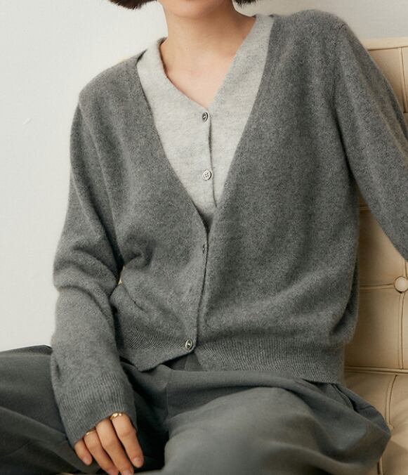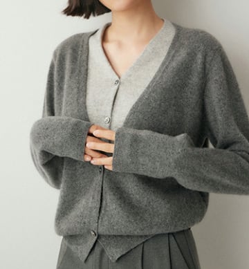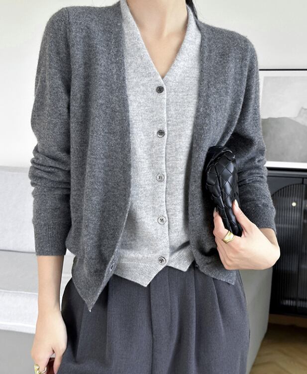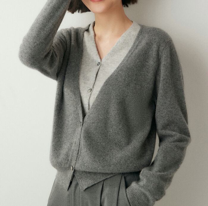 フレンチスタイルのVネックカーディガン/グレー