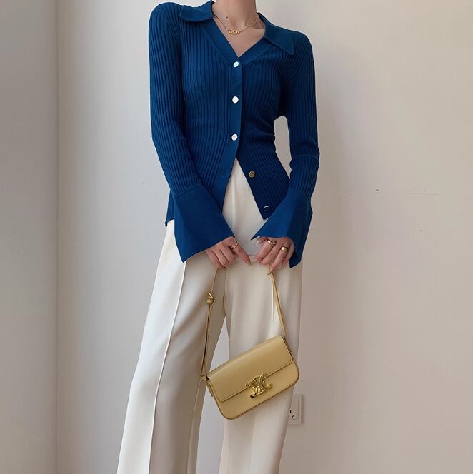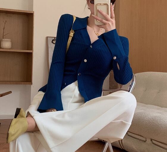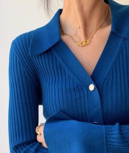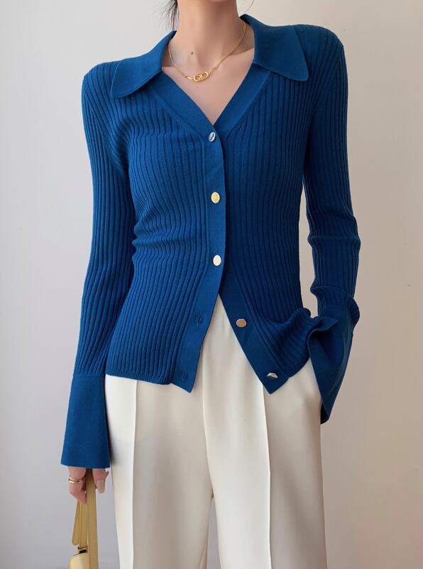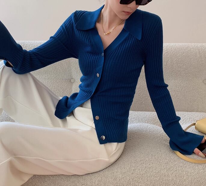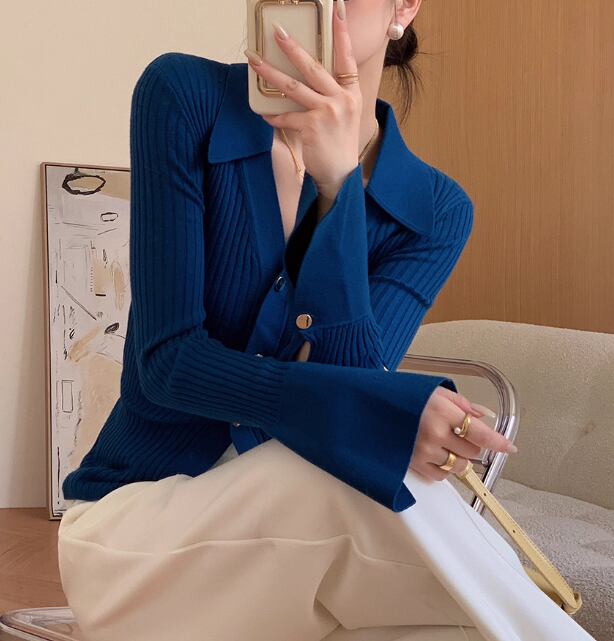 オープンカラー 長袖 ニットポロシャツ / 037