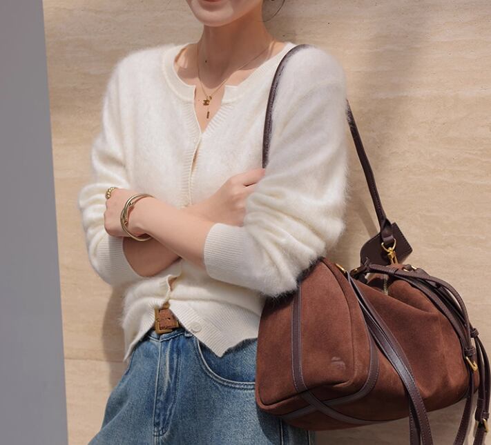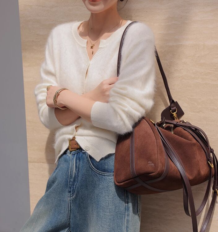 シンプルなデザインで、どんなアイテムにも合わせやすい長袖カーディガン。ワンピースやブラウスに重ねて、フェミニンな印象をプラス。カジュアルなデニムスタイルに合わせて、こなれ感を演出するのもおすすめです。