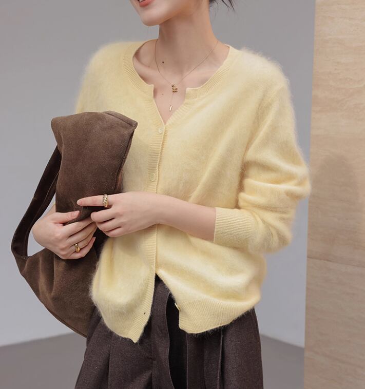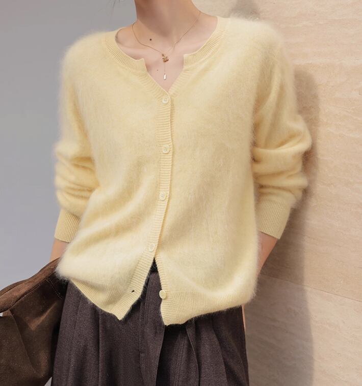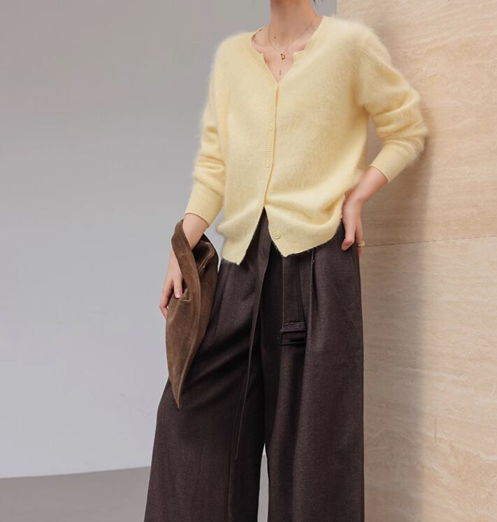 ボタンフロント 長袖 クロップド丈 カーディガン / 044