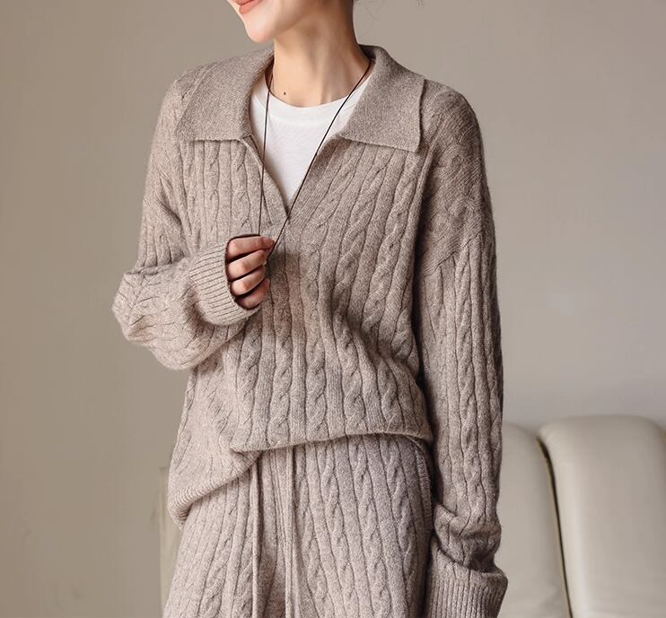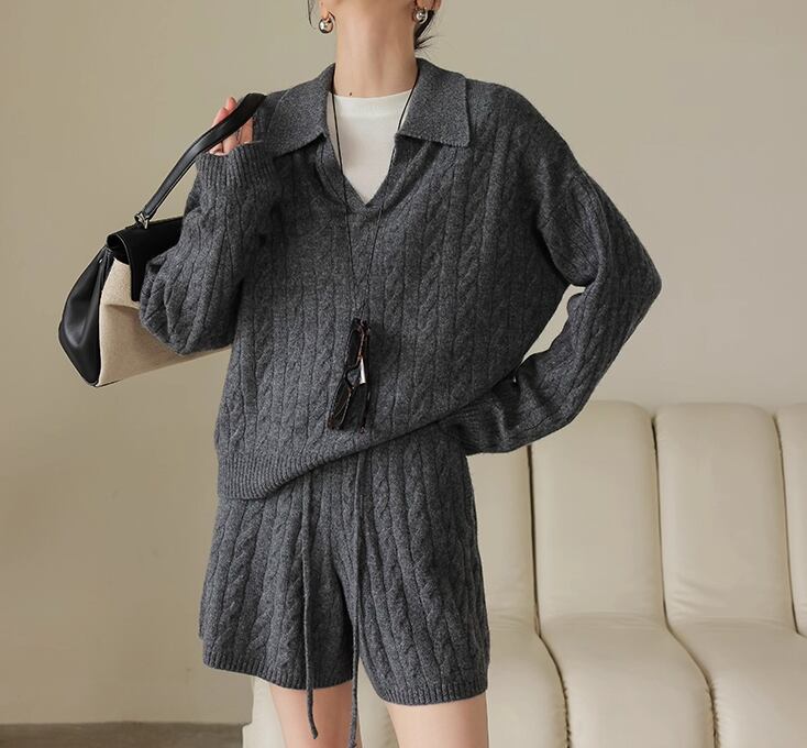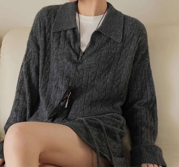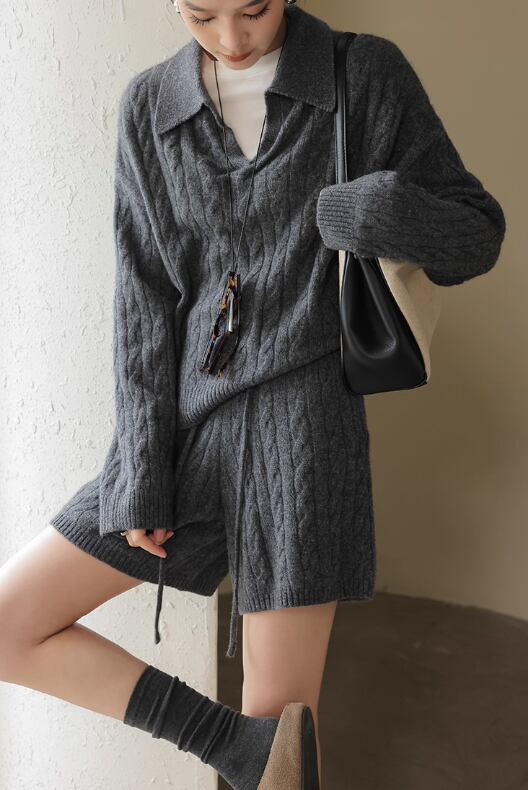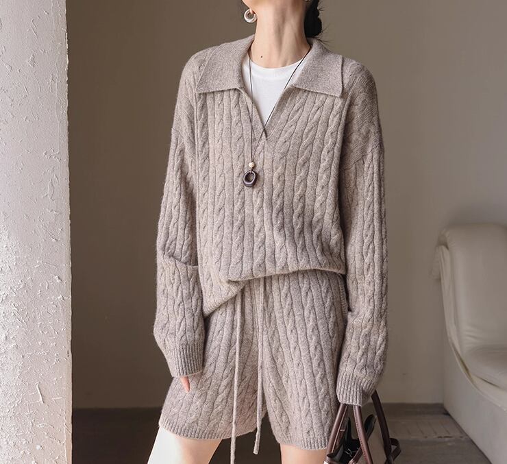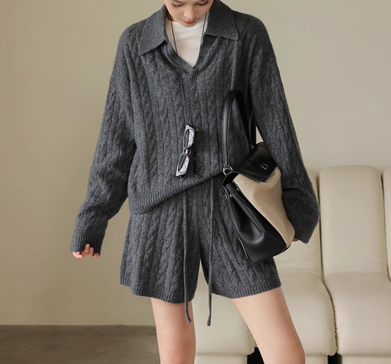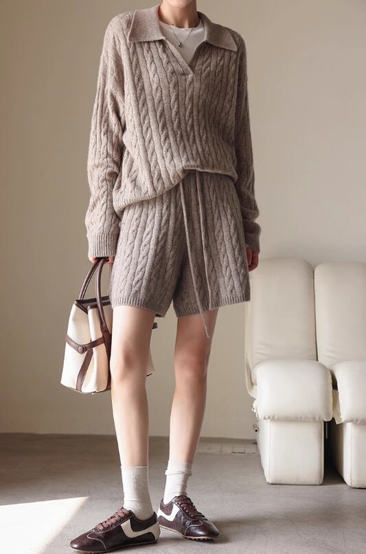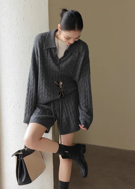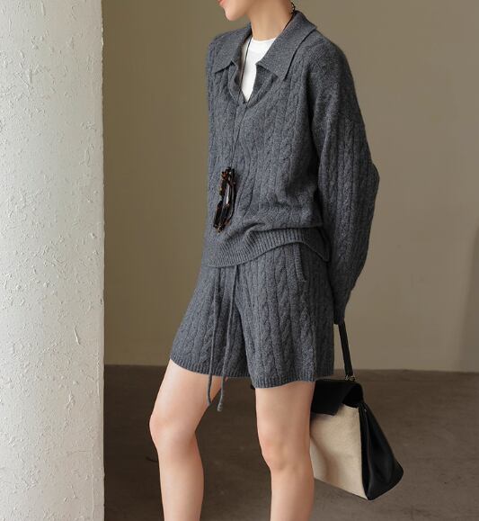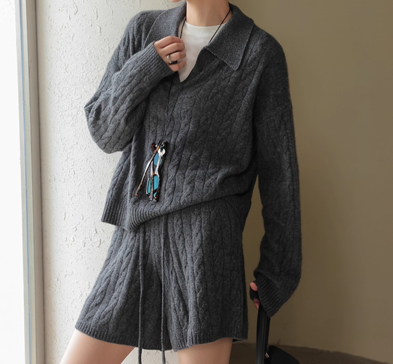 リラックス感漂うオープンカラーのニットポロシャツ。