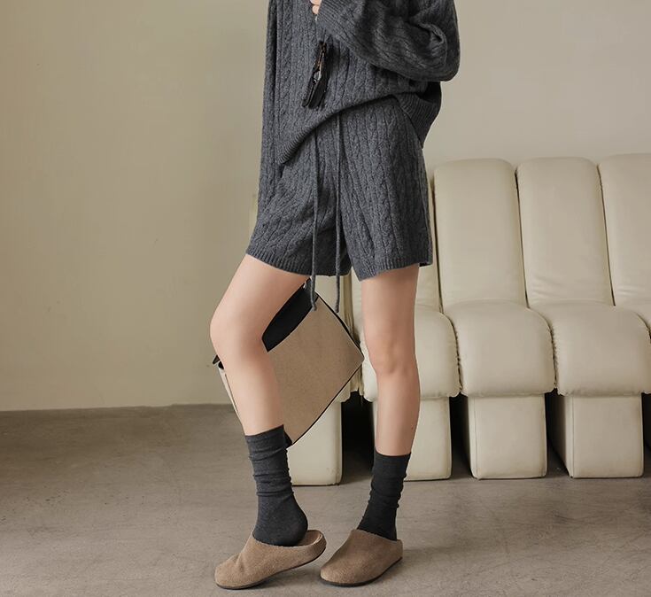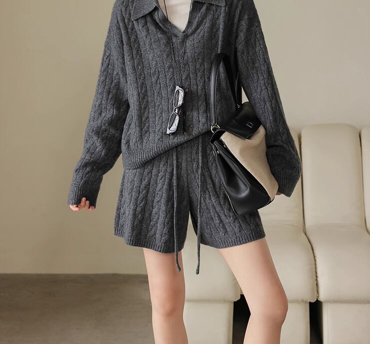 ケーブル編みがアクセントとなり、シンプルなデザインながらも表情豊かな着こなしが可能です。