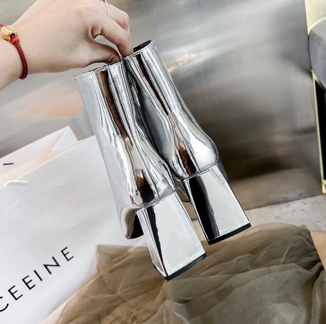 サイドジップ ミドルヒール ポインテッドトゥ ブーツ / 046