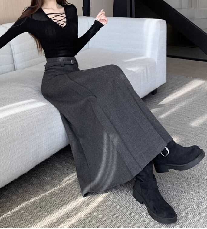 きちんと感のあるデザインで、オフィススタイルにもおすすめのミモレ丈フレアスカート。