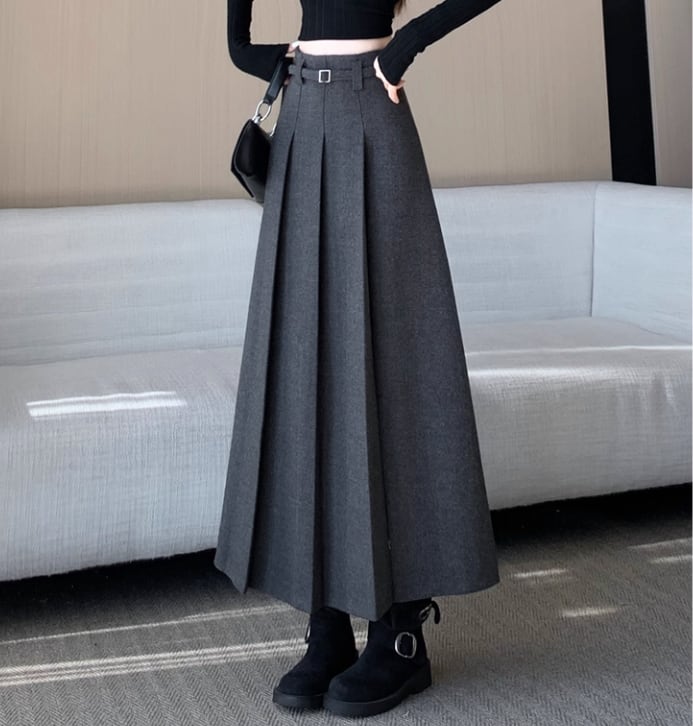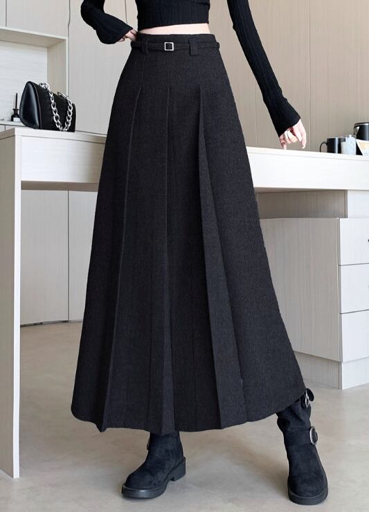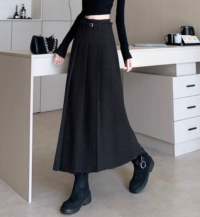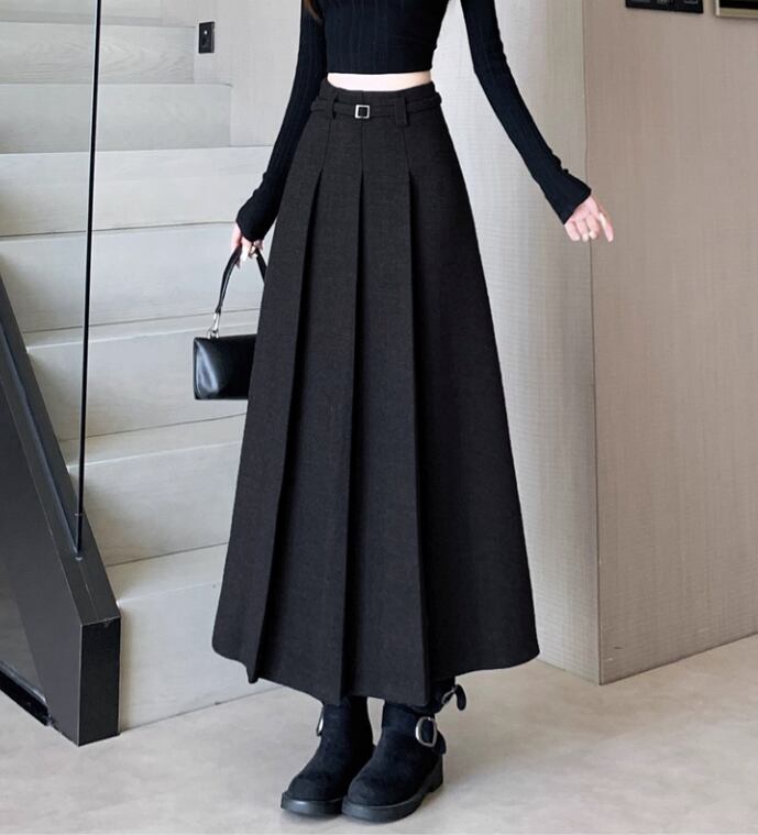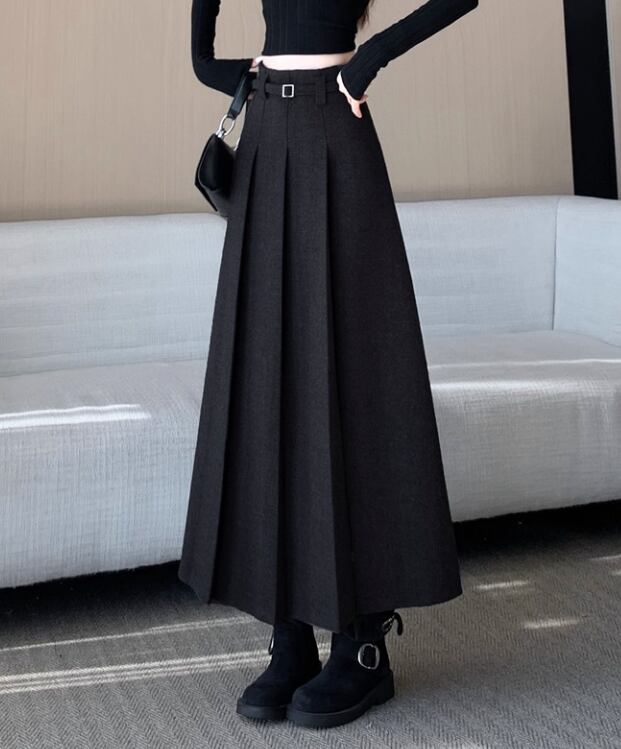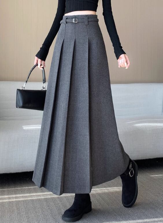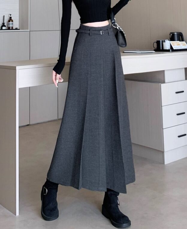 プリーツ入り ミモレ丈 Aラインスカート / 055