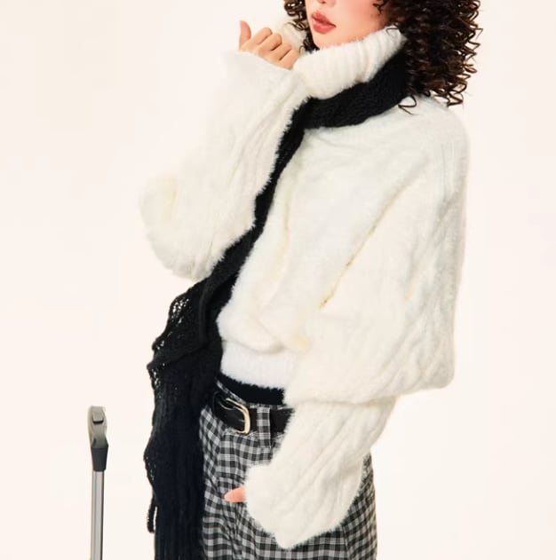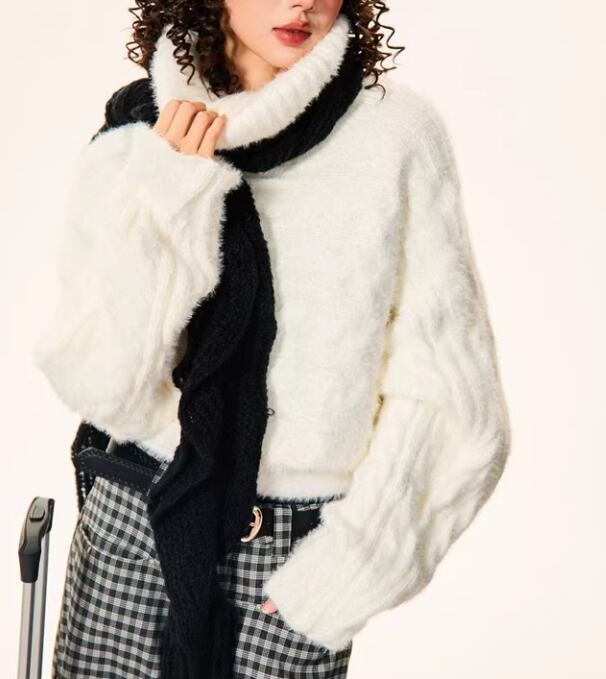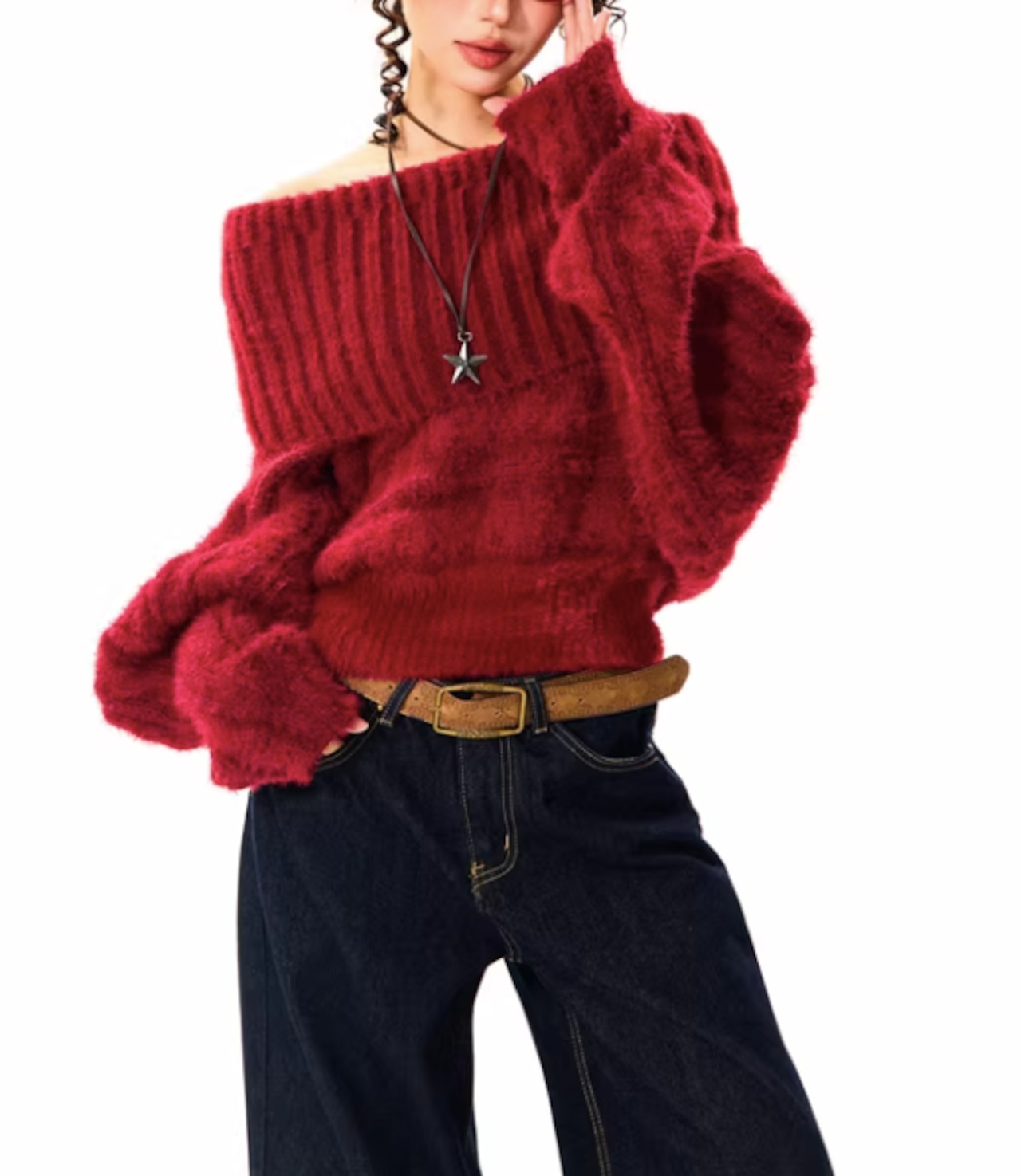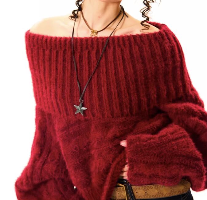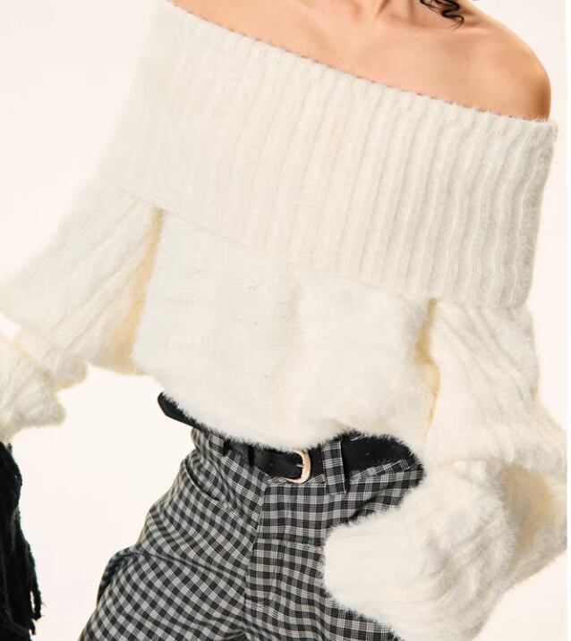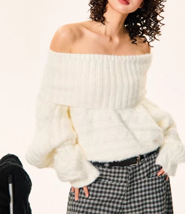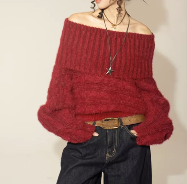 オフショルダーとしても着用できる、着回し力の高いニット。
