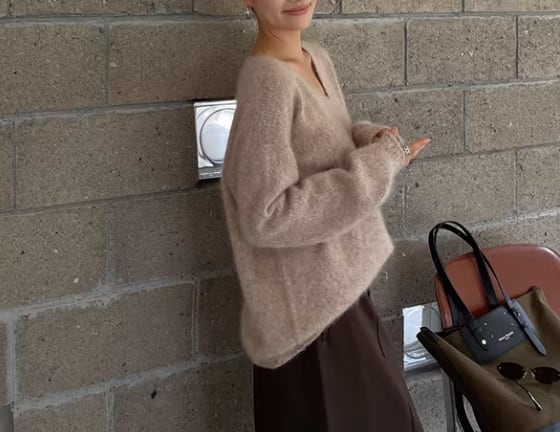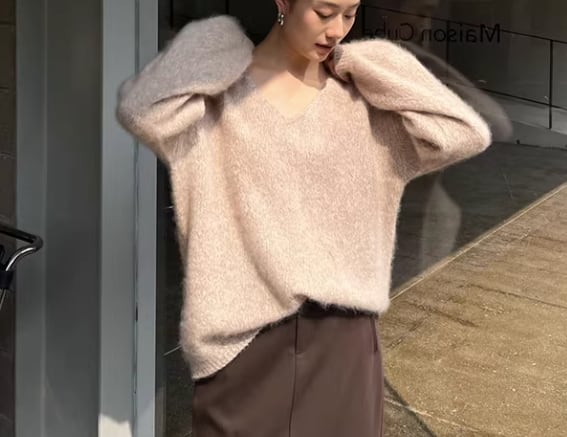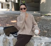 長袖 広めVネック ニット / 071