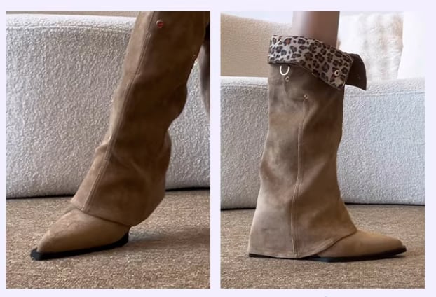 ロング丈で脚をすらっと長く見せてくれるスエード風ブーツ。カジュアルながらも上品な印象を与え、普段使いからお出かけまで幅広いシーンで活躍します。レオパード柄のデザインがアクセントとなり、コーディネートにさりげない個性をプラス。シンプルなスタイルに合わせるだけで、こなれ感を演出できます。