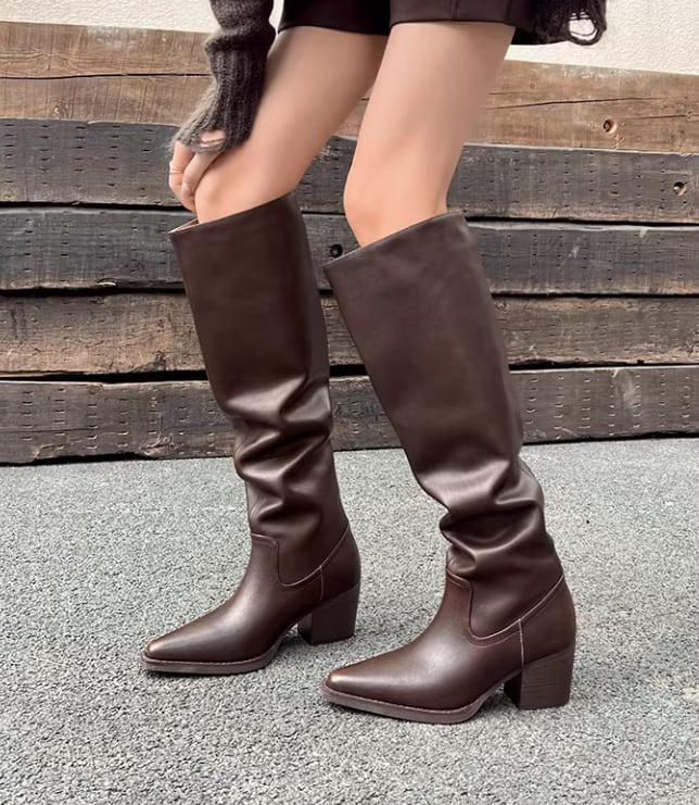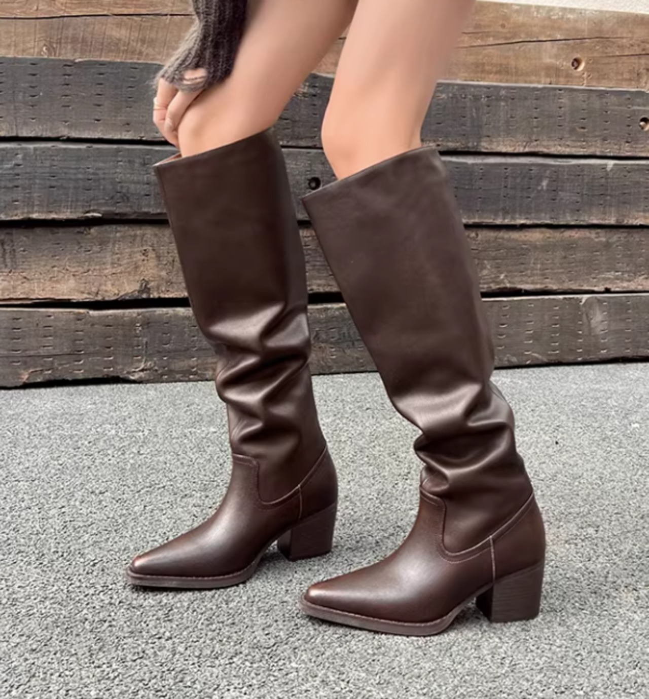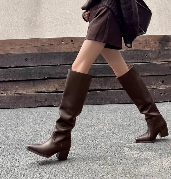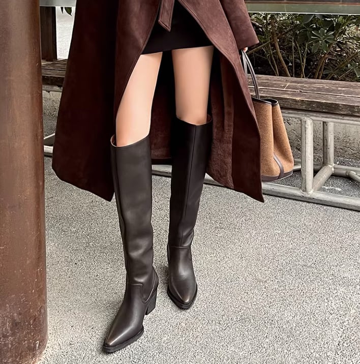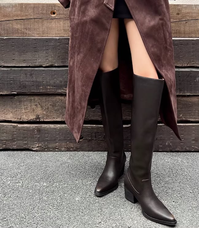 ポインテッドトゥ ミドルヒール ロング丈 ブーツ / 086