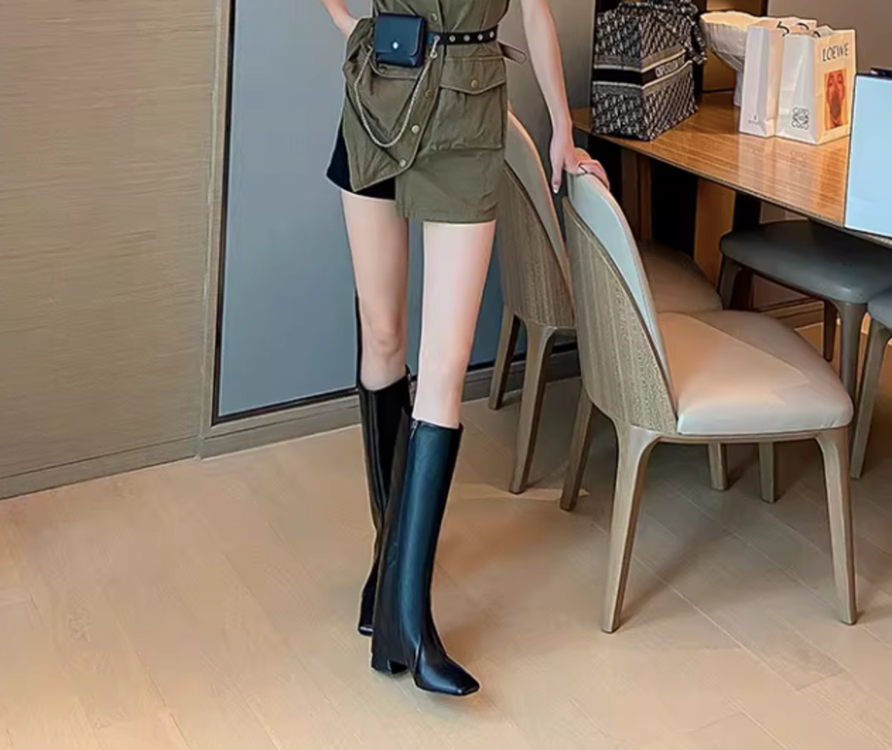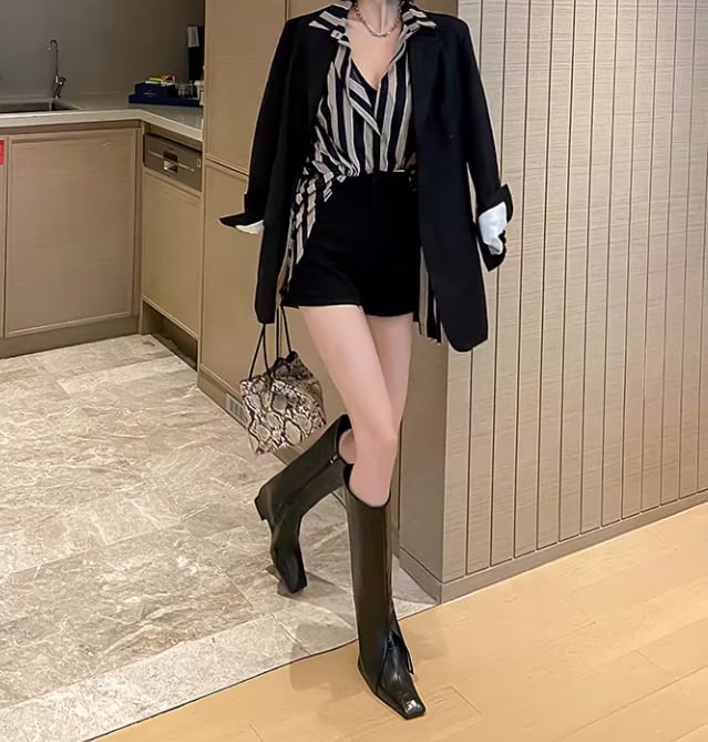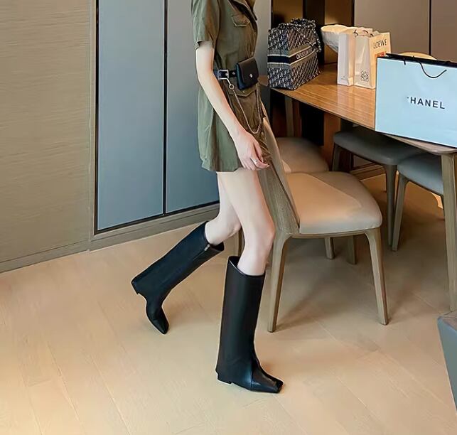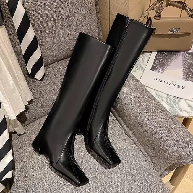 センターシーム スクエアトゥ ロングブーツ / 087