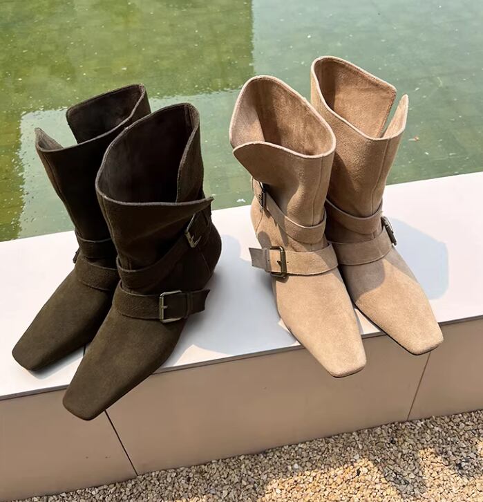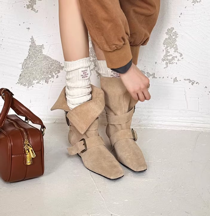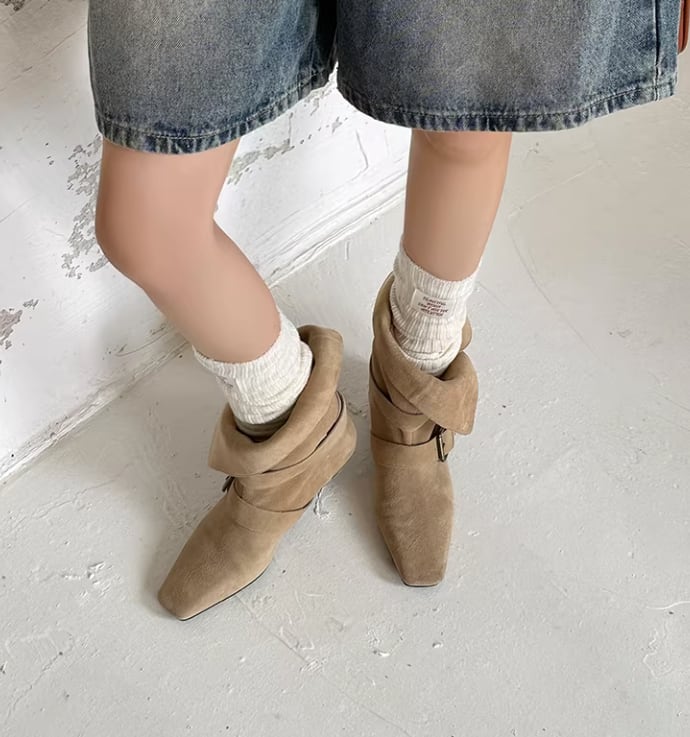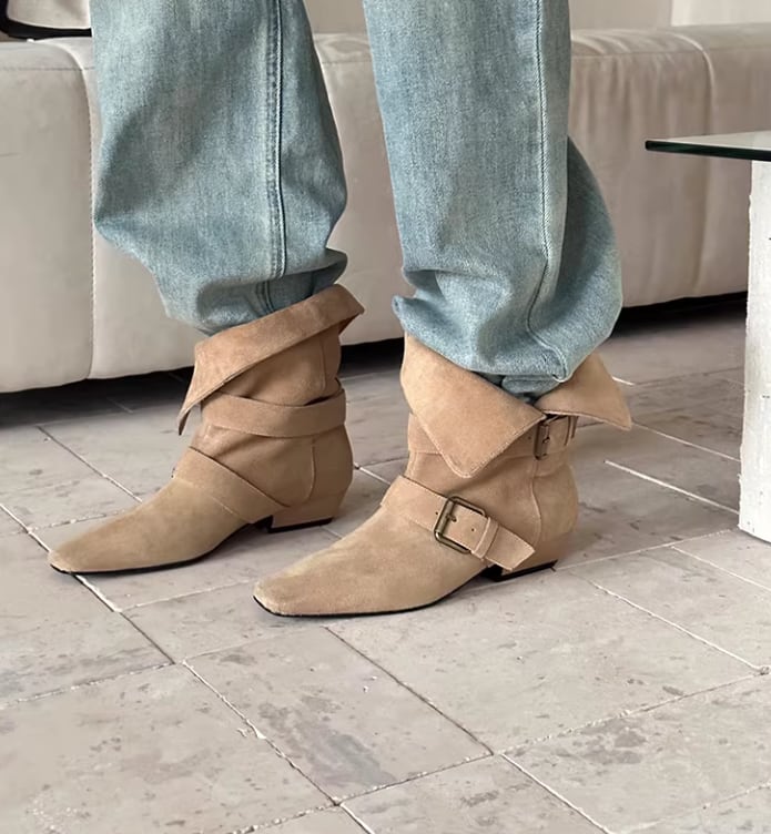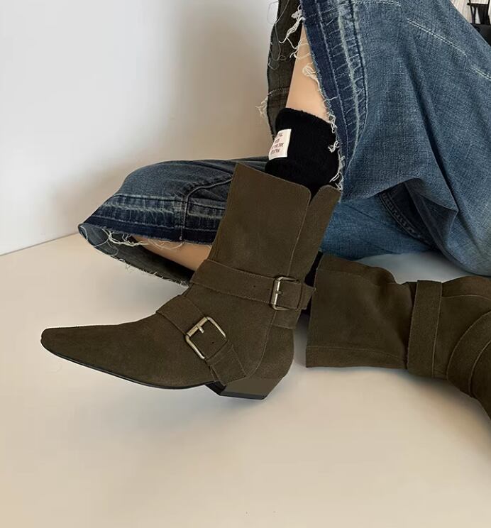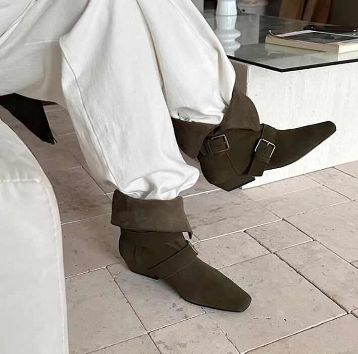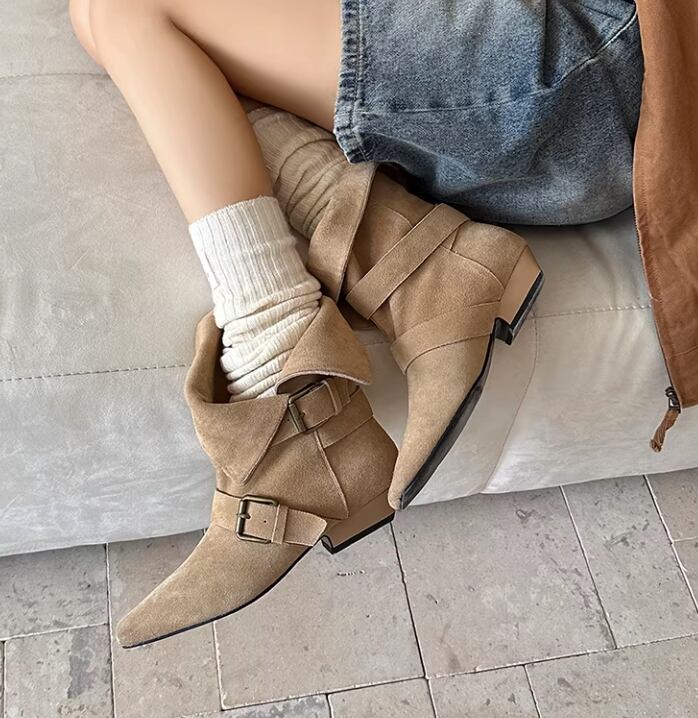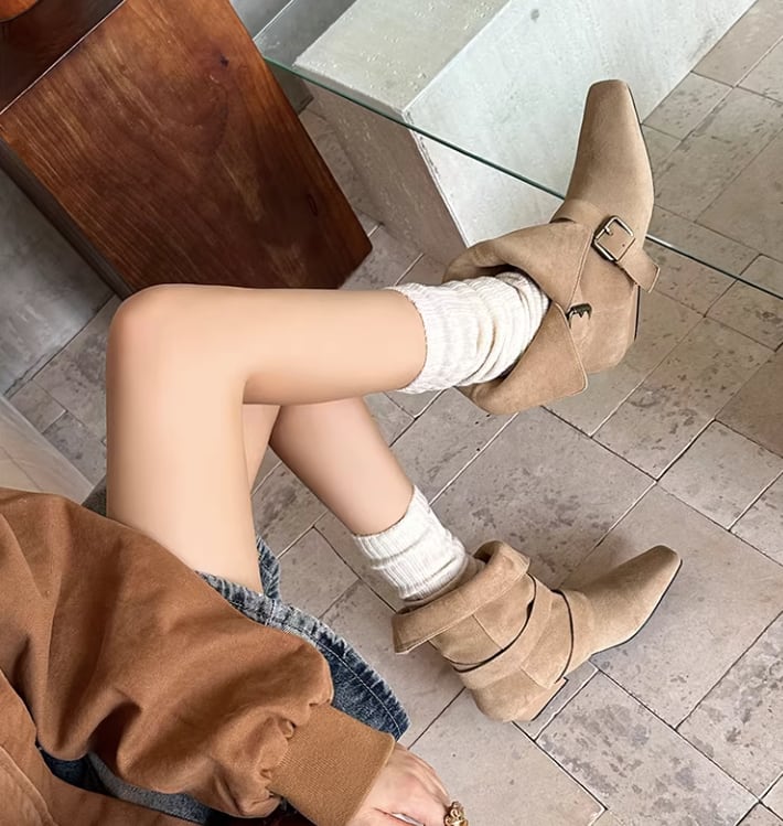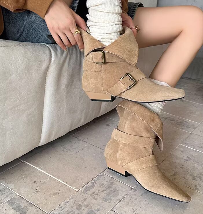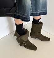 ベルト付き ローヒール ショート ポインテッドトゥ ブーツ / 089
