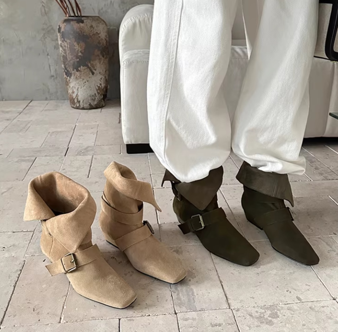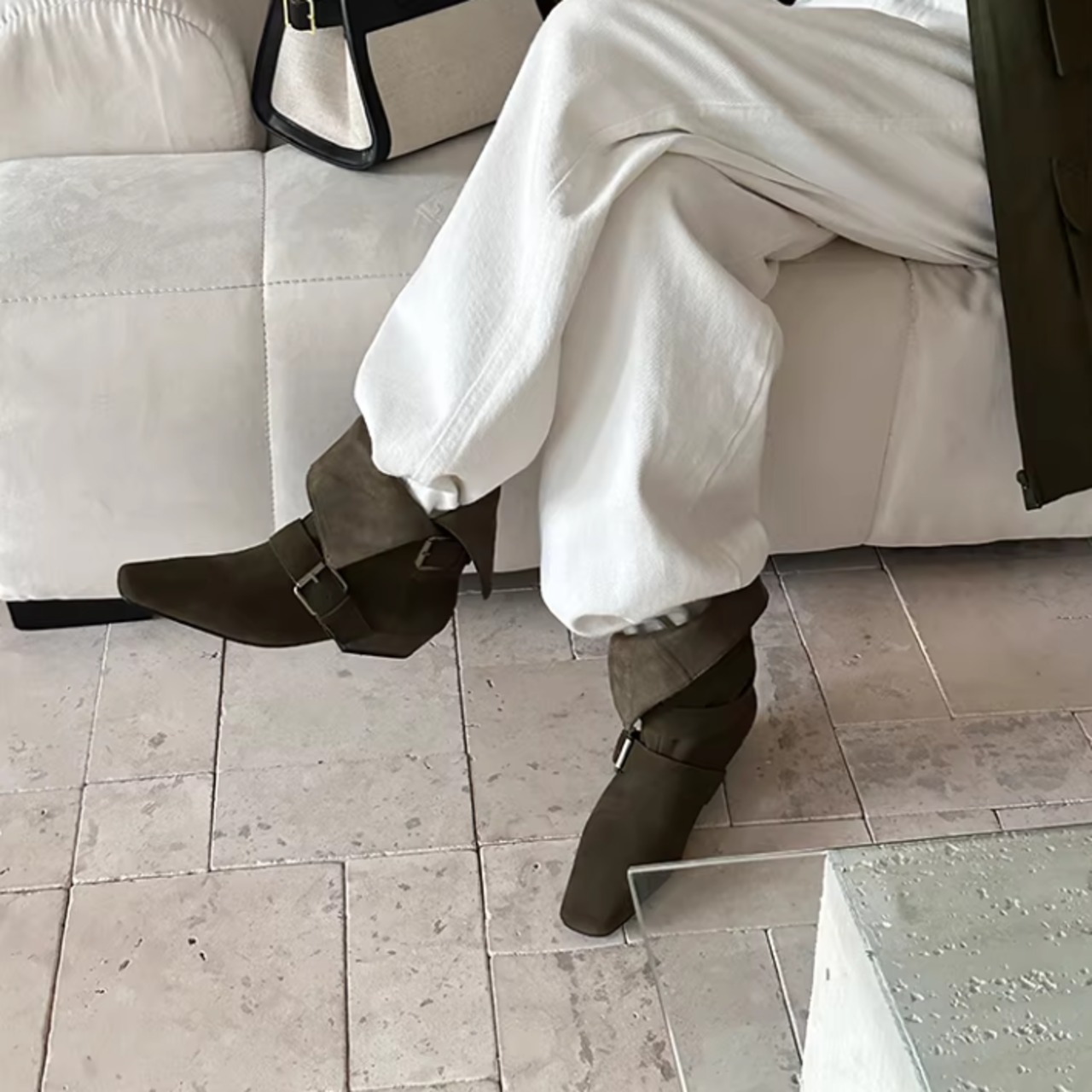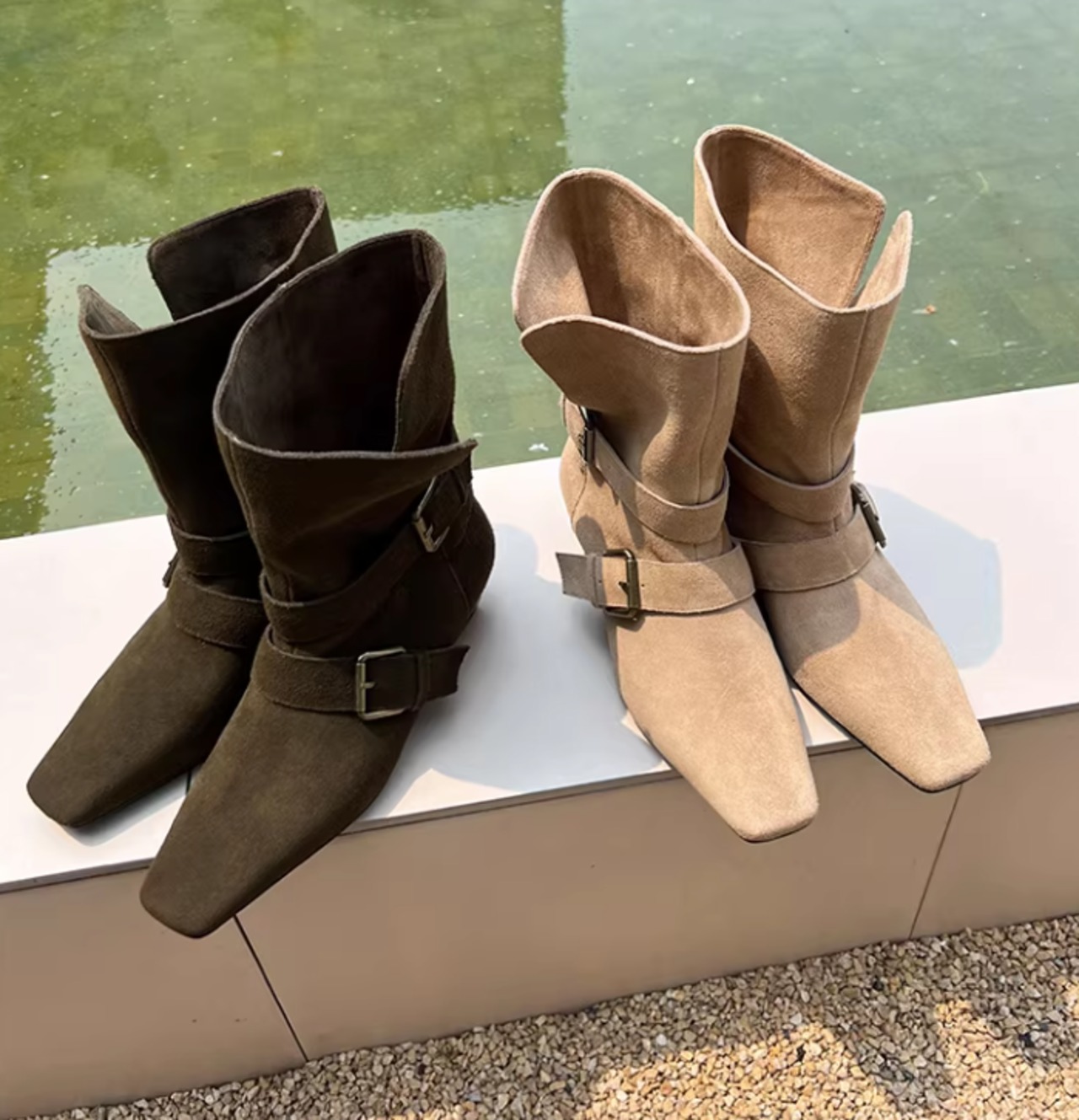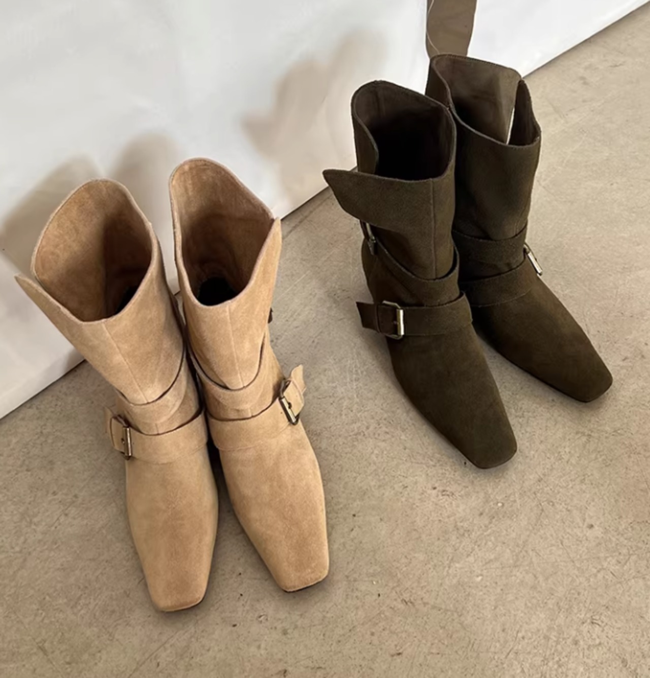 ベルト付き ローヒール ショート ポインテッドトゥ ブーツ / 089