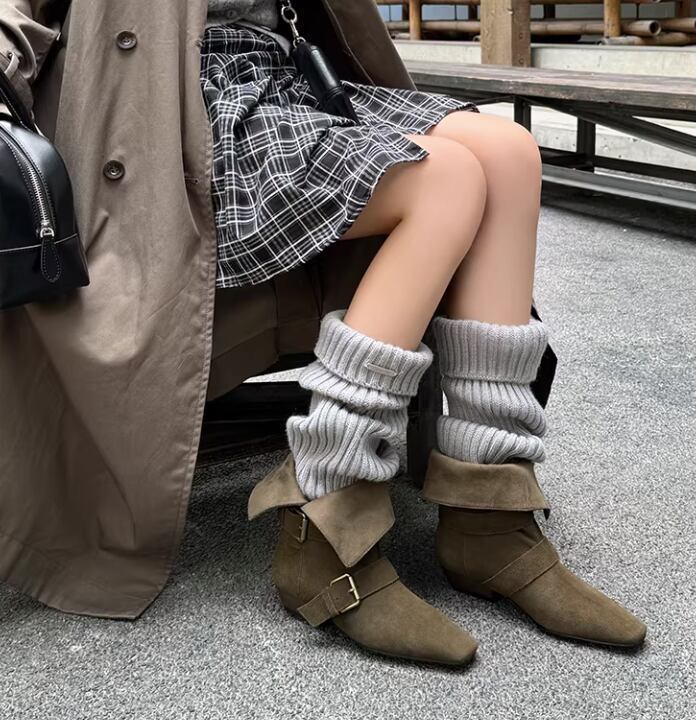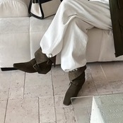 ベルトがアクセントになった、ショート丈のブーツです。そのまま使ってもOKですし、折り曲げてショート丈として使用してもOK。ポインテッドトゥのデザインが足元をシャープに演出し、洗練された印象を与えます。普段使いにはもちろん、ちょっとしたお出かけにもおすすめです。