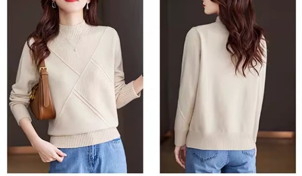 リブ編み 長袖 デザイン ニット / 094