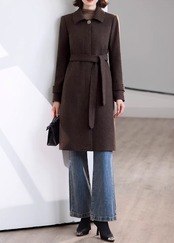 ベルト付き ロング丈 ステンカラー コート / 105