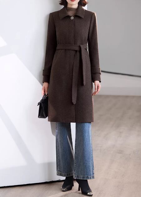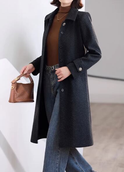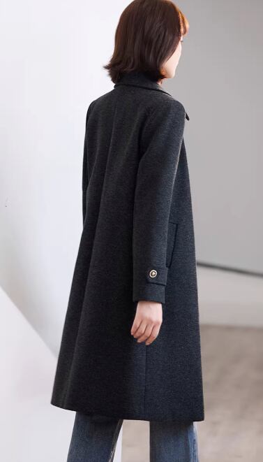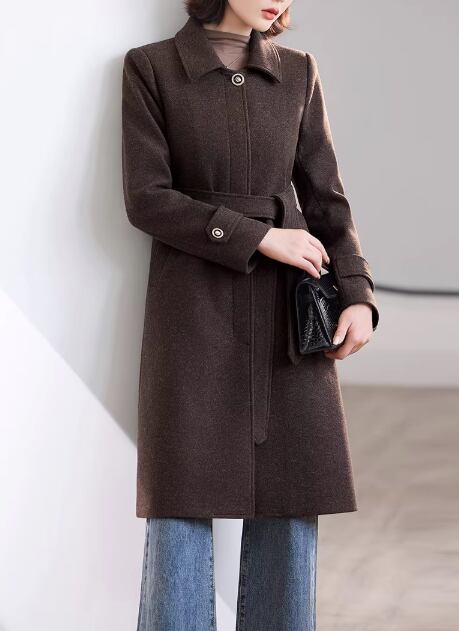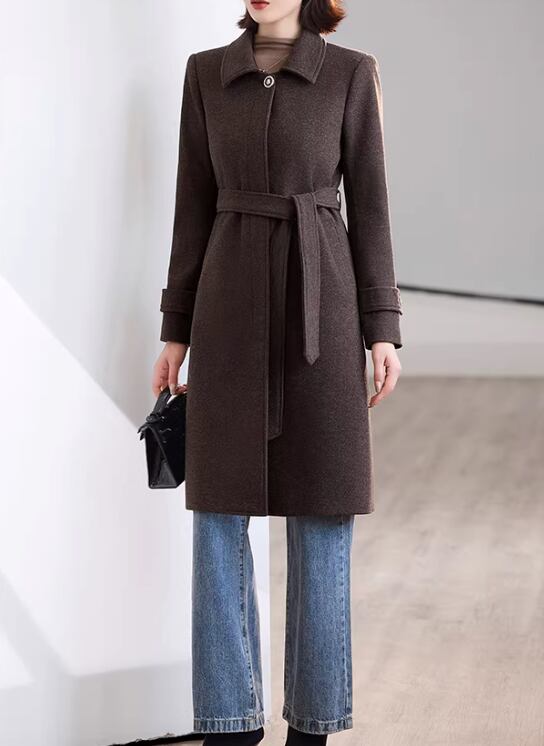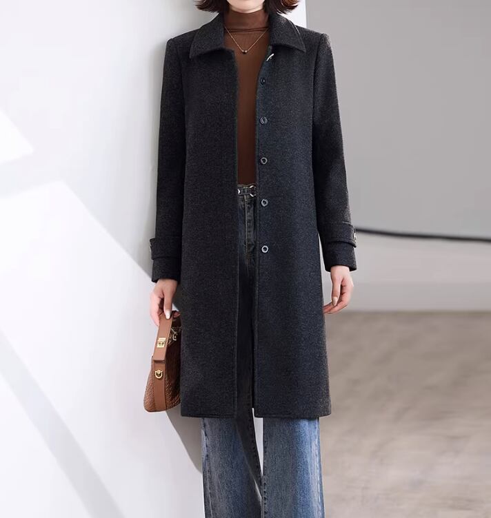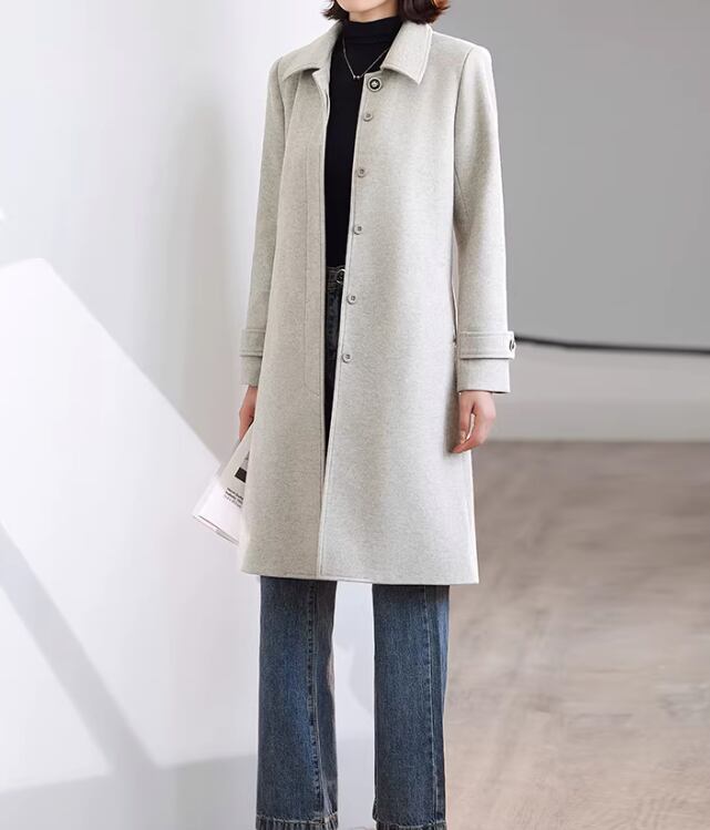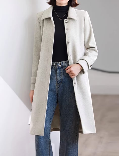 クラシカルなデザインで、大人の女性らしさを引き立てるミモレ丈コート。ステンカラーが顔周りをすっきりと見せ、知的な雰囲気を演出します。ベルトを締めればメリハリのあるシルエットに、外せばリラックスした着こなしが楽しめます。