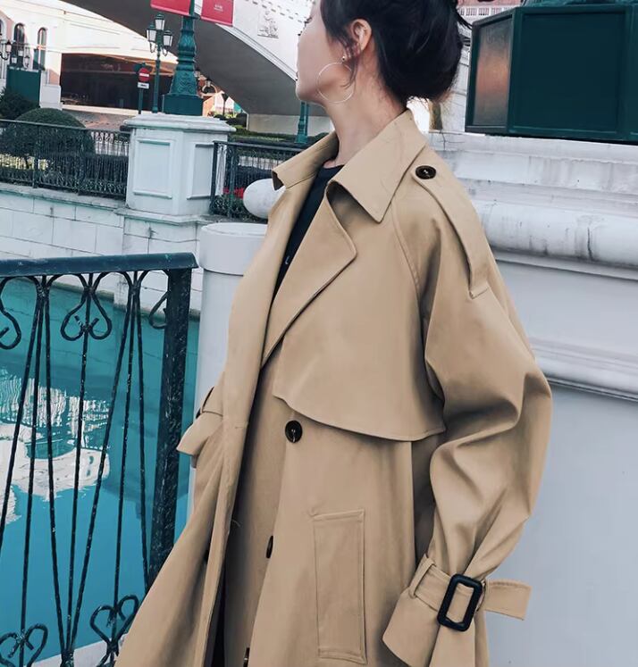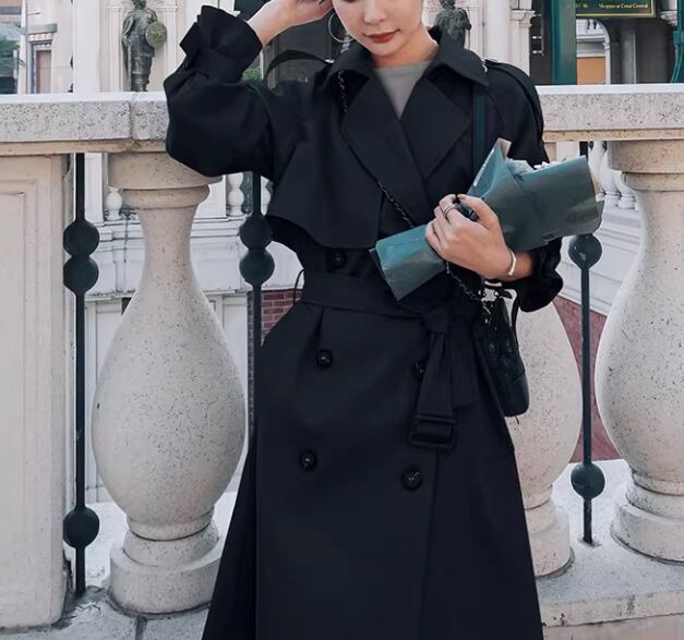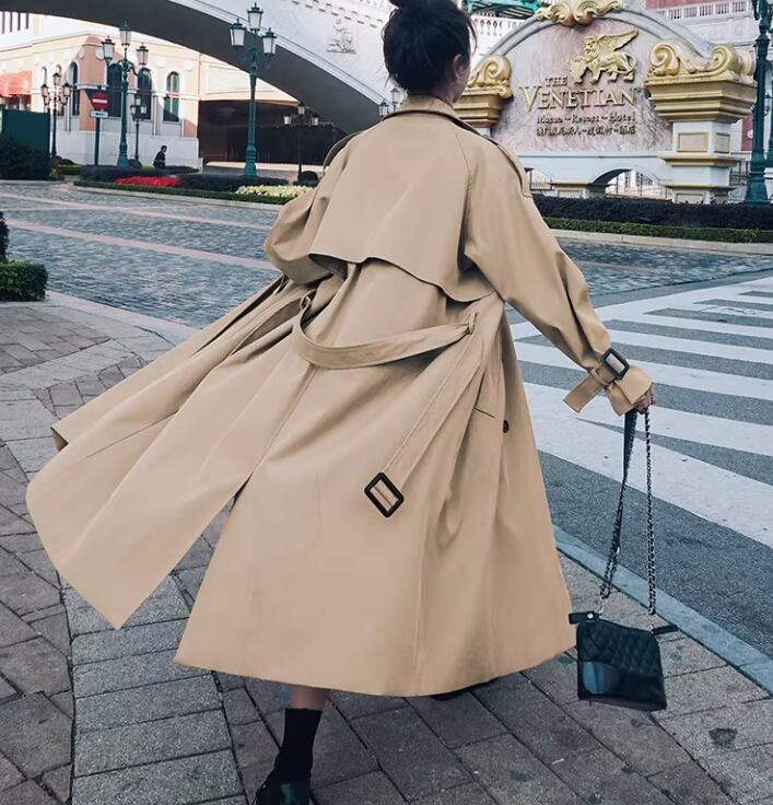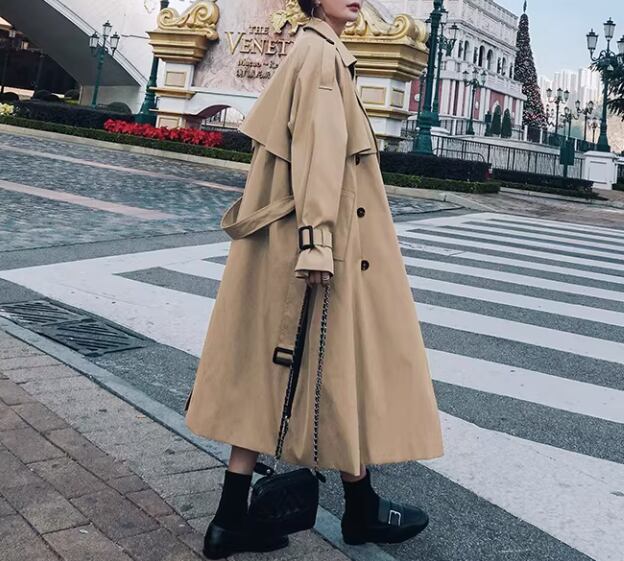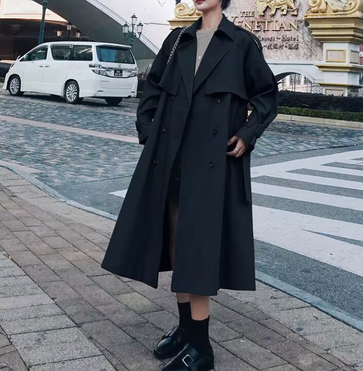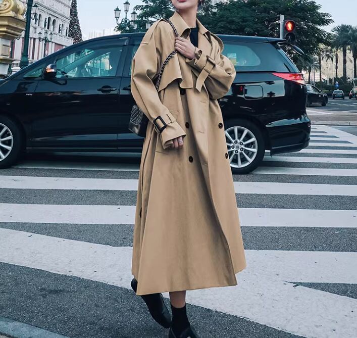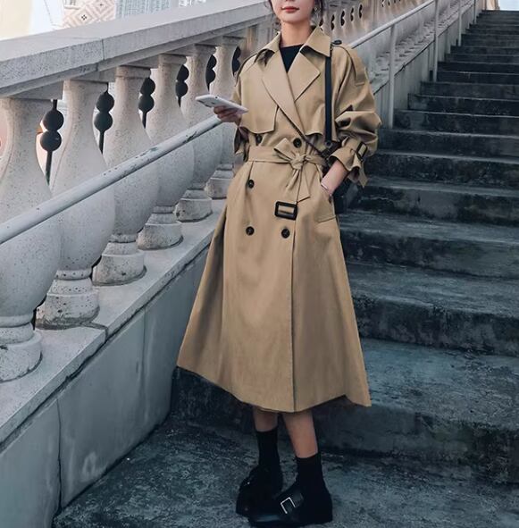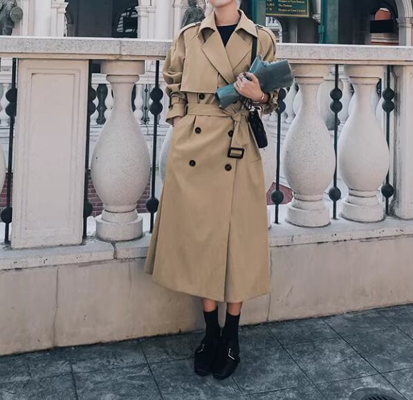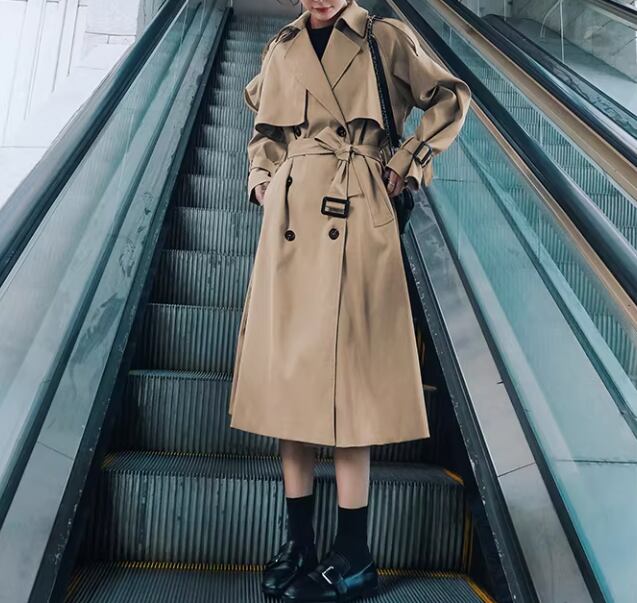 ロング丈 ダブルブレスト トレンチコート ベルト付き / 107
