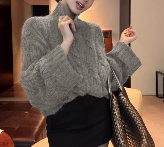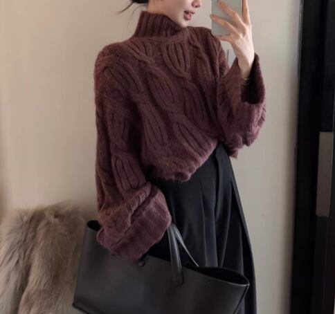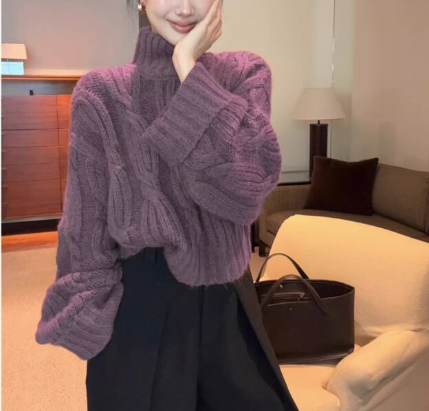 ケーブル編み 長袖 クロップド丈 ニット / 119