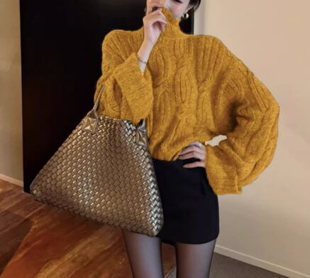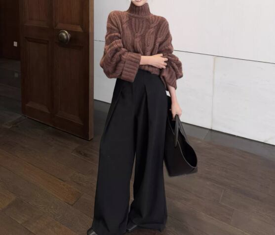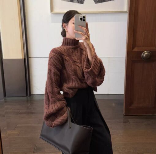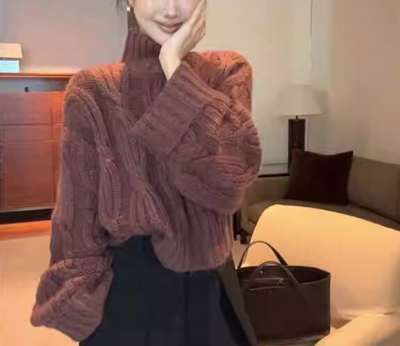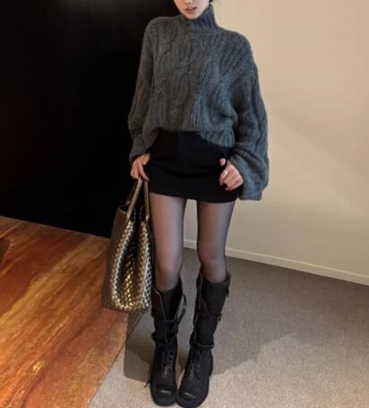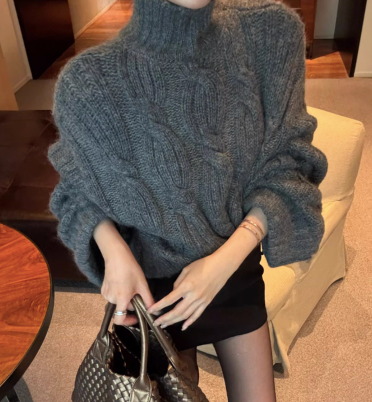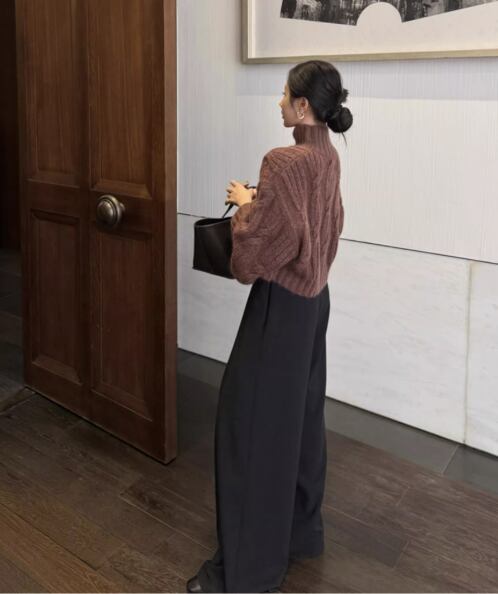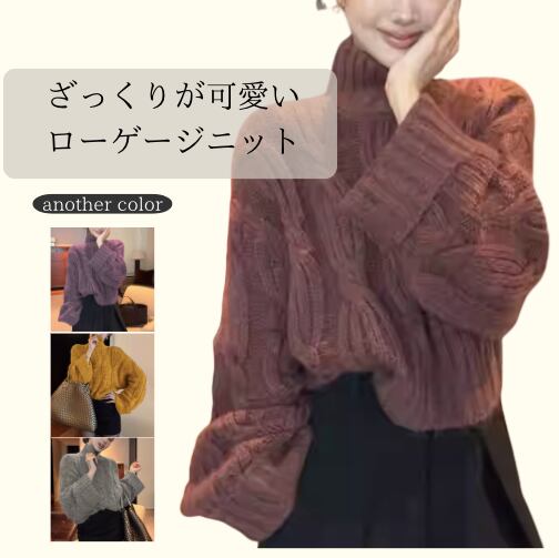 ざっくりとしたケーブル編みが目を引くローゲージニット。