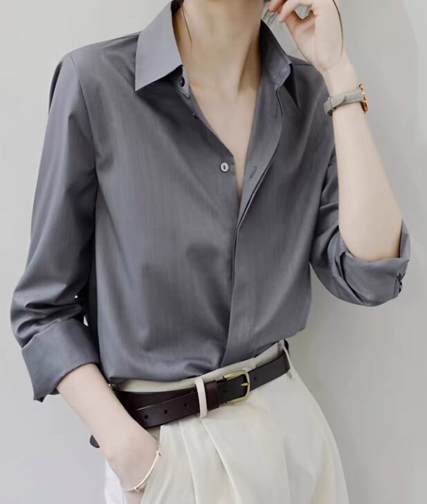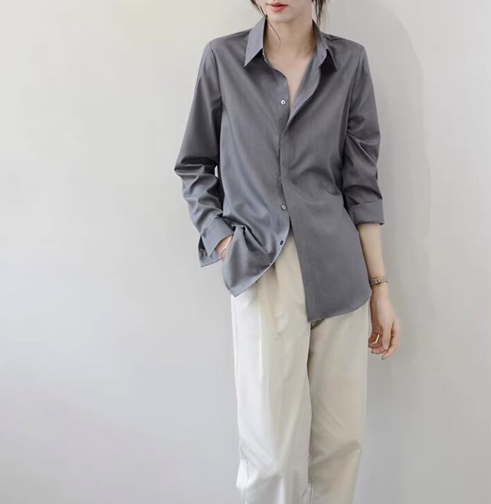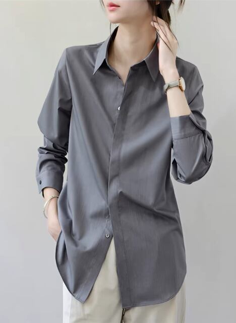 きちんと感がありながらも、程よく力の抜けた着こなしが叶うシャツカラーブラウス。