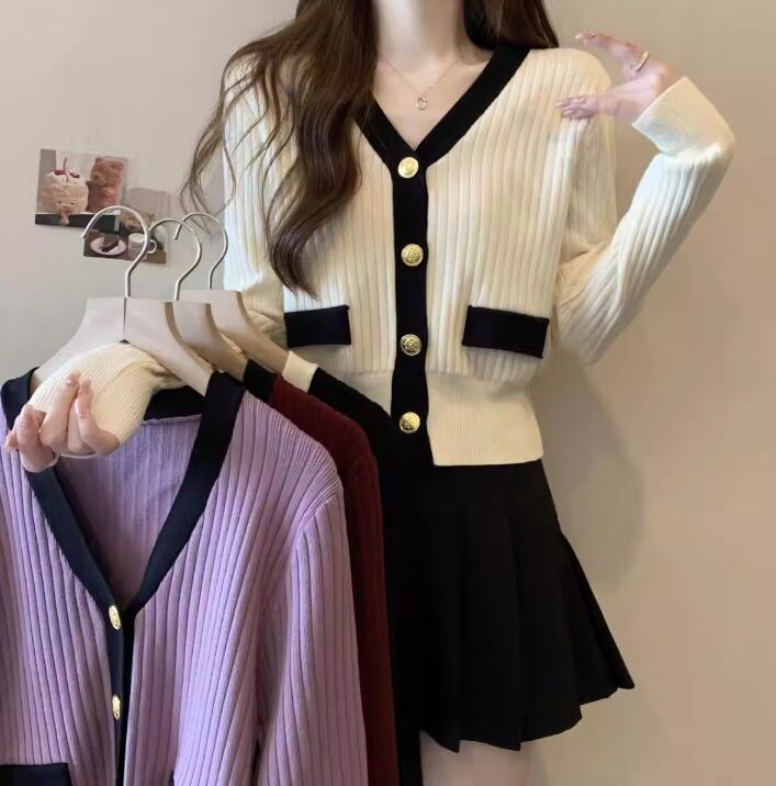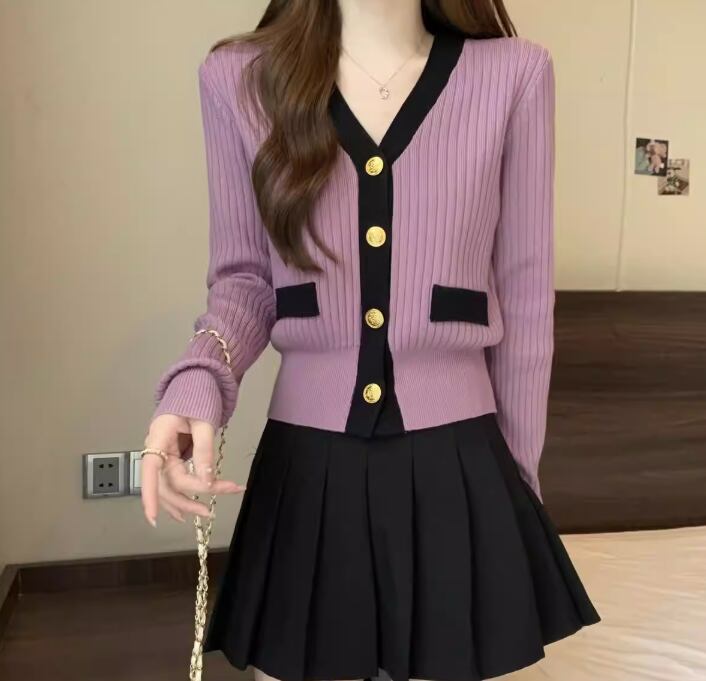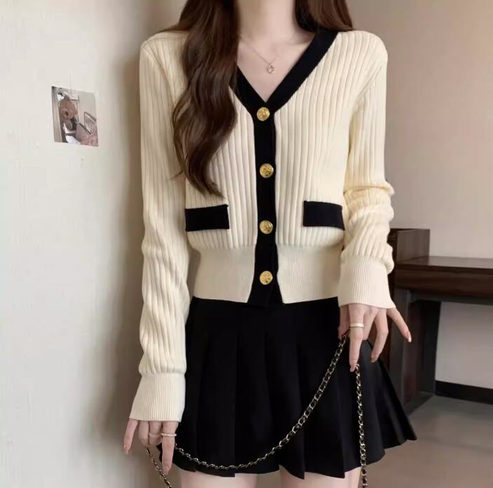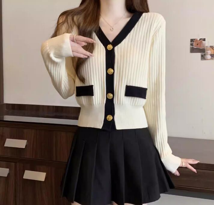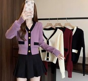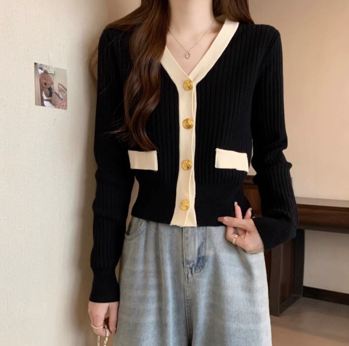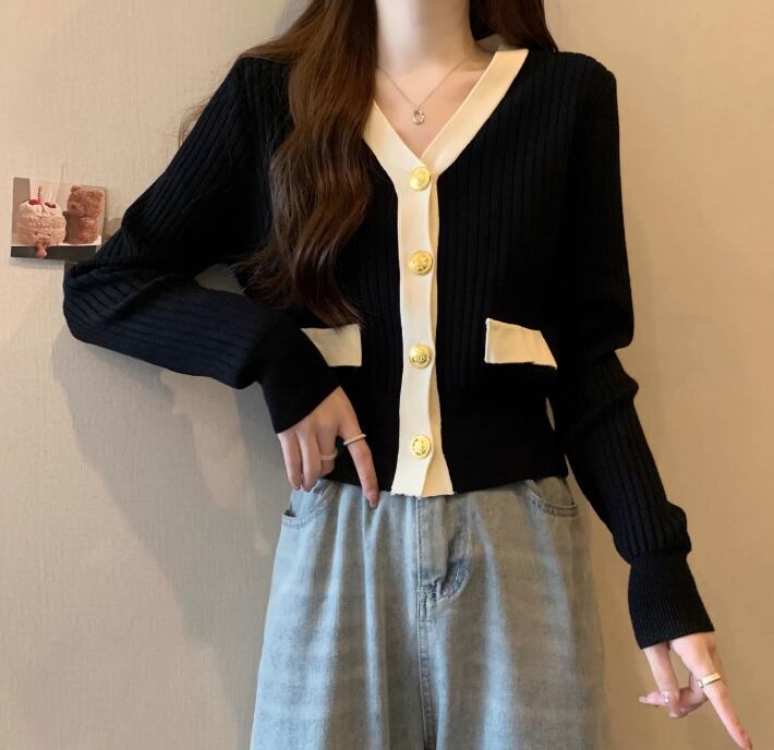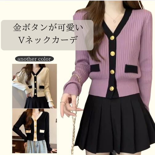 Vネック 金ボタン ショート丈 ニットカーディガン / 130