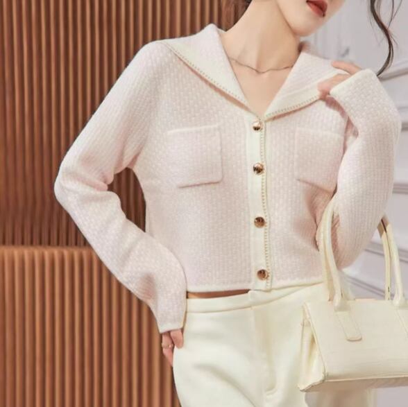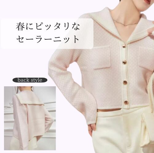 セーラー襟 長袖 コンパクト ニットカーディガン / 137
