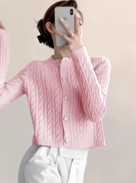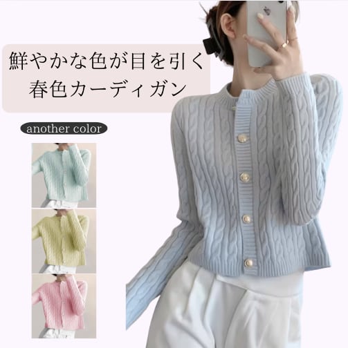 春まで使えるカラーニットカーディガン 長袖 ケーブル編み / 141