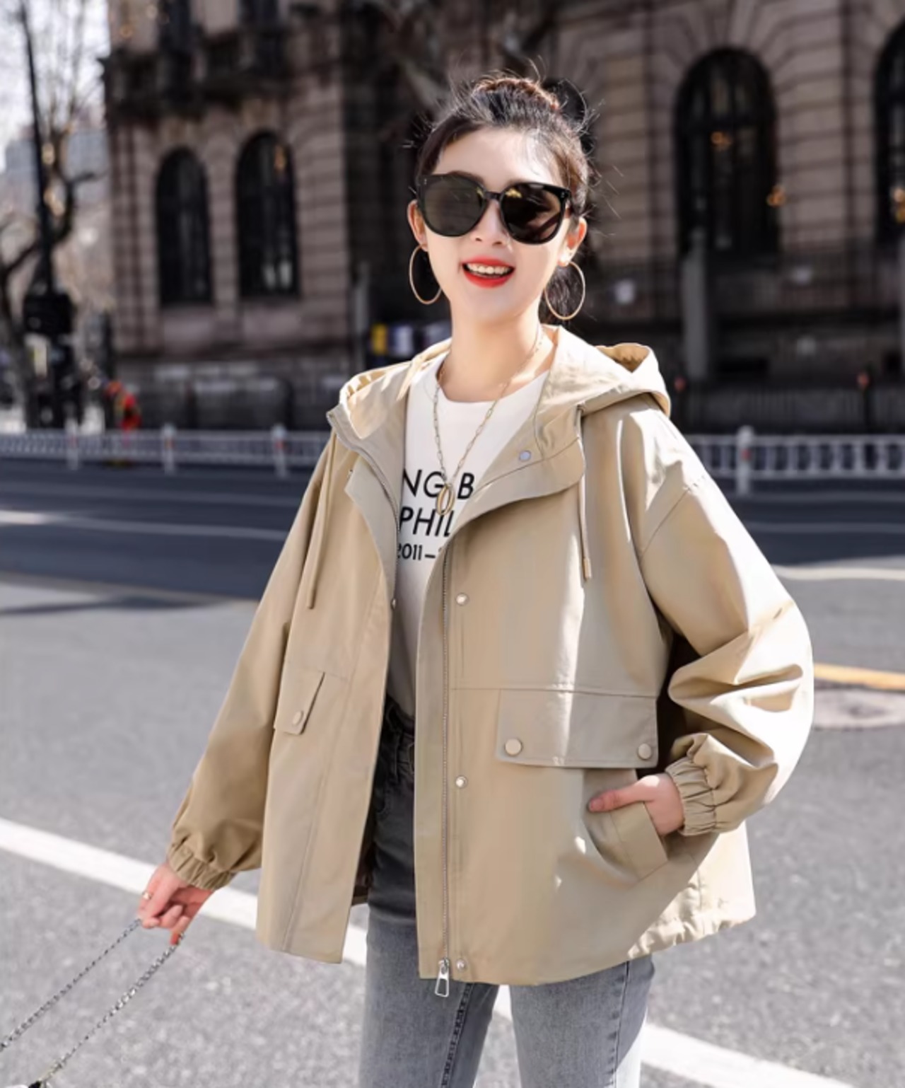 フード付きでカジュアルに着こなせるマウンテンパーカー。両サイドのパッチポケットがアクセントになり、機能性も兼ね備えています。普段使いはもちろん、旅行やアウトドアなど、様々なシーンで活躍する一枚です。
