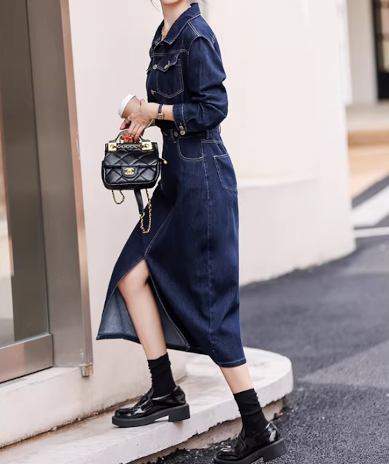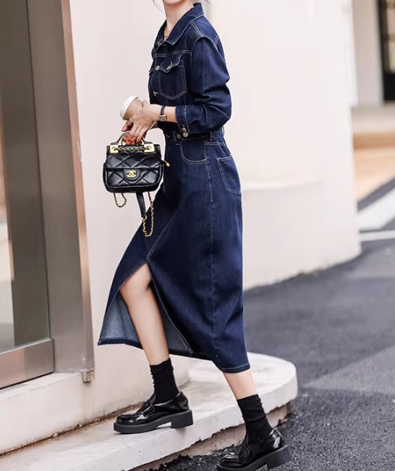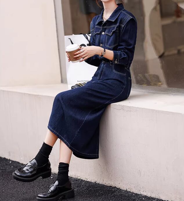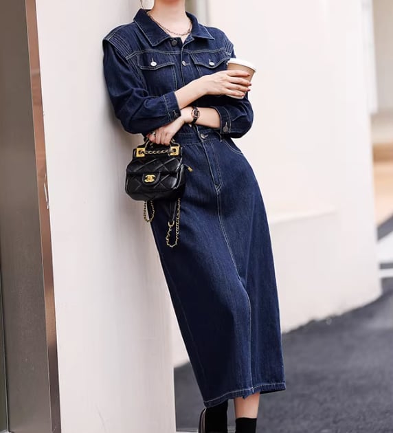 フロントボタンがアクセントの、デニムシャツワンピース。カジュアルながらも上品な印象を与え、普段使いからちょっとしたお出かけまで幅広く活躍します。